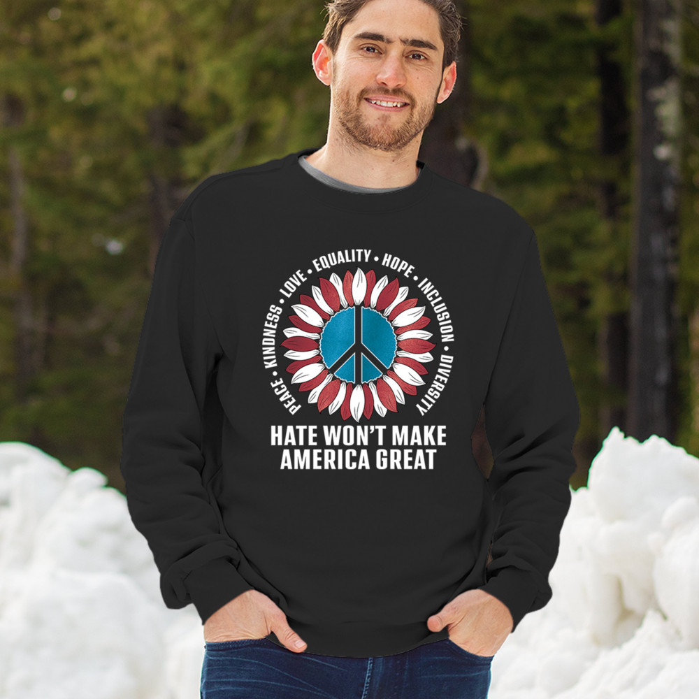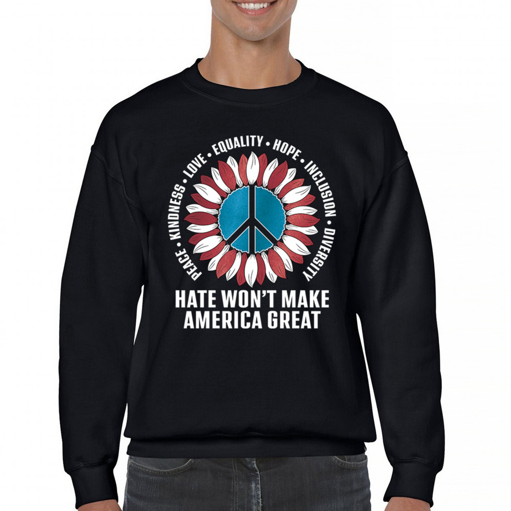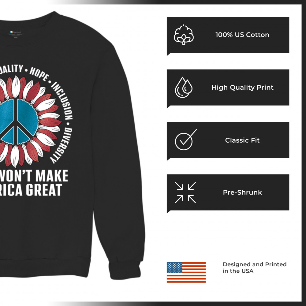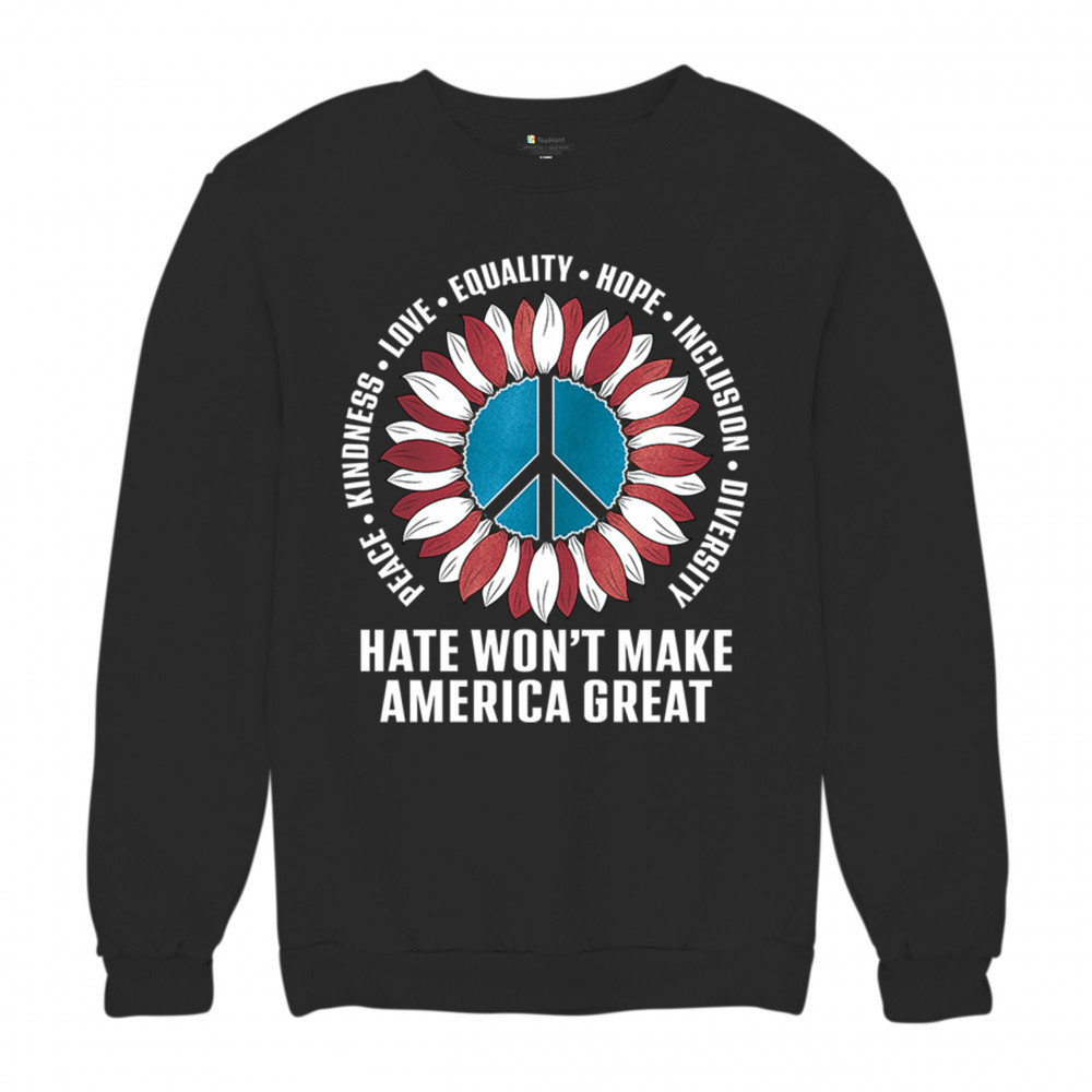 Embrace the message of love, equality, and unity with this eye-catching design. The sunflower and peace symbol represent a commitment to kindness and inclusion, rejecting hate and division. Perfect for those who support liberal values, this design is a bold statement against negativity and for a brighter future. Wear it proudly to show your belief in a diverse, united America. Let this design be a symbol of hope and progress for all.