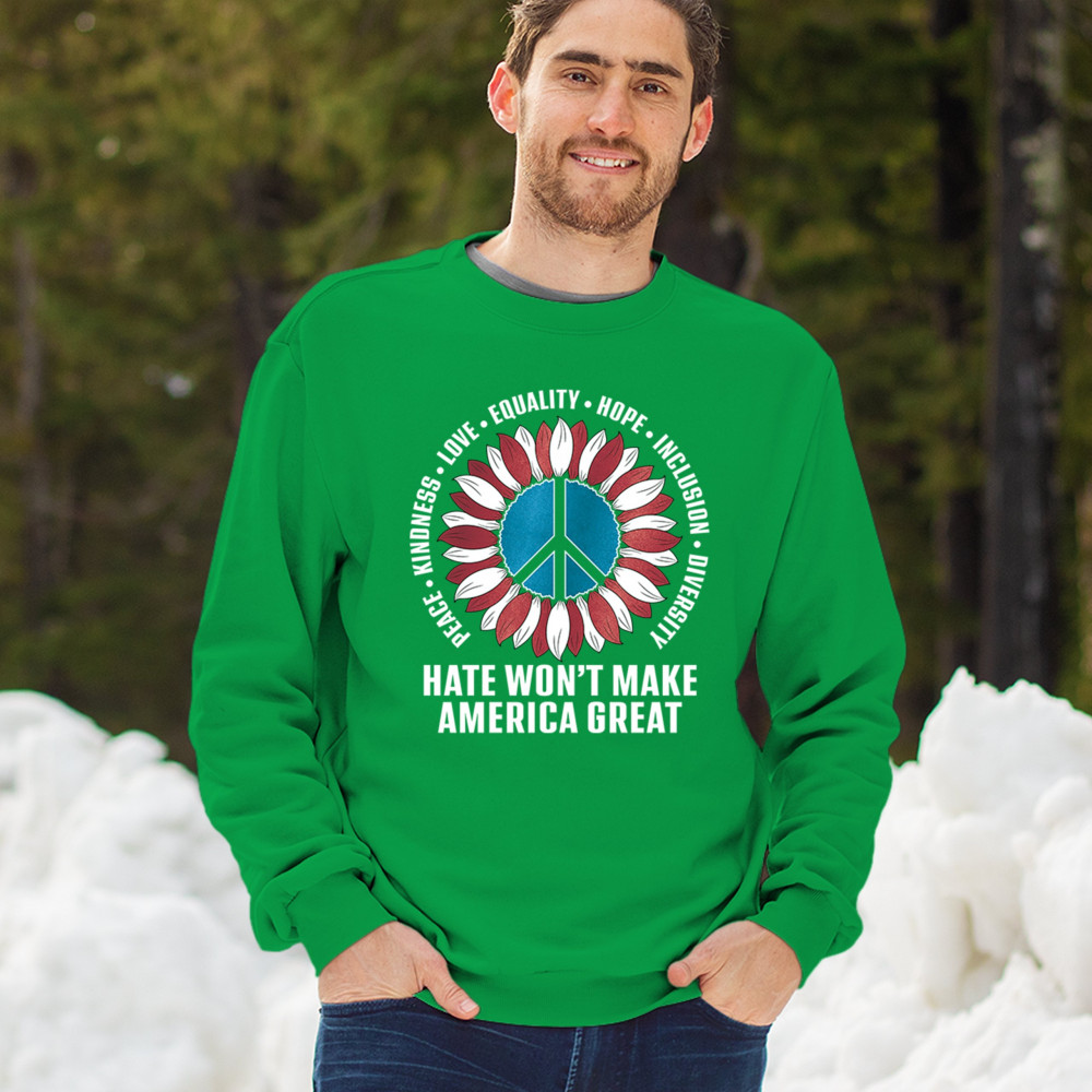 Embrace the message of love, equality, and unity with this eye-catching design. The sunflower and peace symbol represent a commitment to kindness and inclusion, rejecting hate and division. Perfect for those who support liberal values, this design is a bold statement against negativity and for a brighter future. Wear it proudly to show your belief in a diverse, united America. Let this design be a symbol of hope and progress for all.