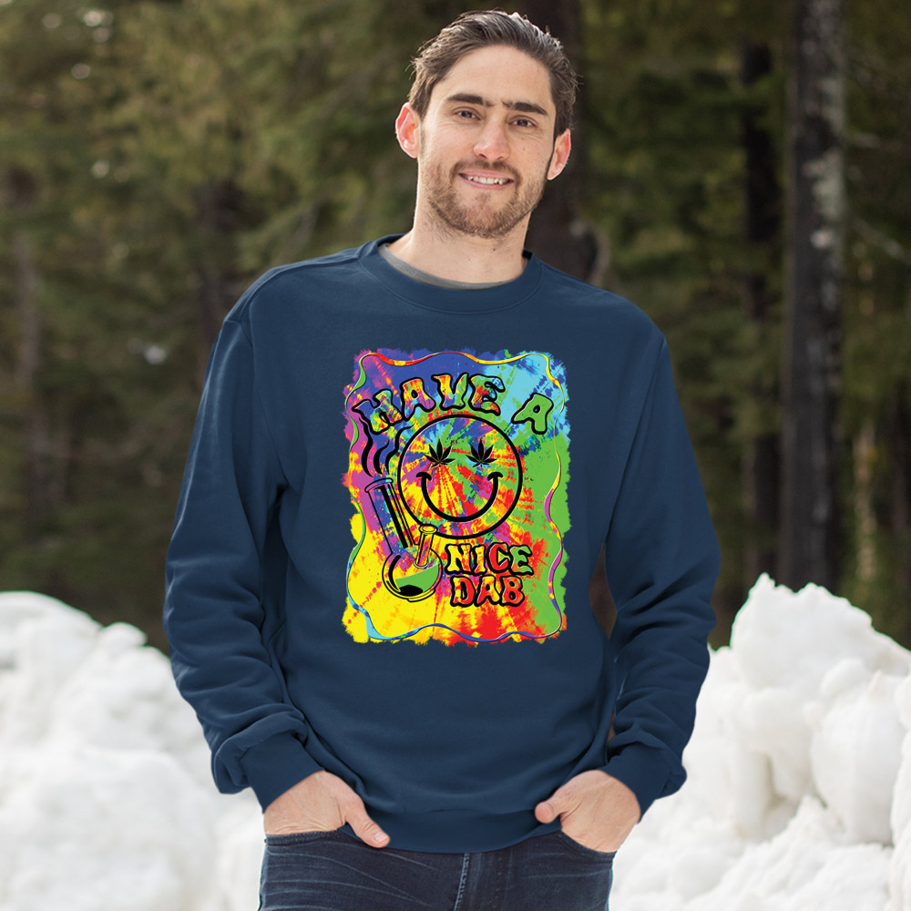 HAVE A NICE DAB sweatshirt 420 happy face hitting marijuana weed bong crewneck navy blue