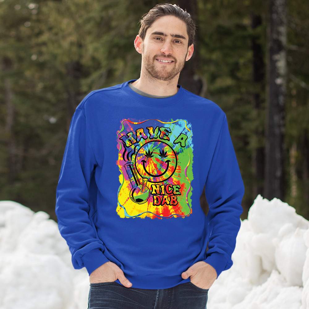 HAVE A NICE DAB sweatshirt 420 happy face hitting marijuana weed bong crewneck royal blue