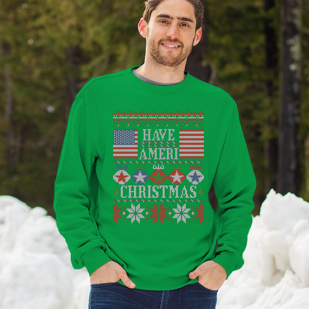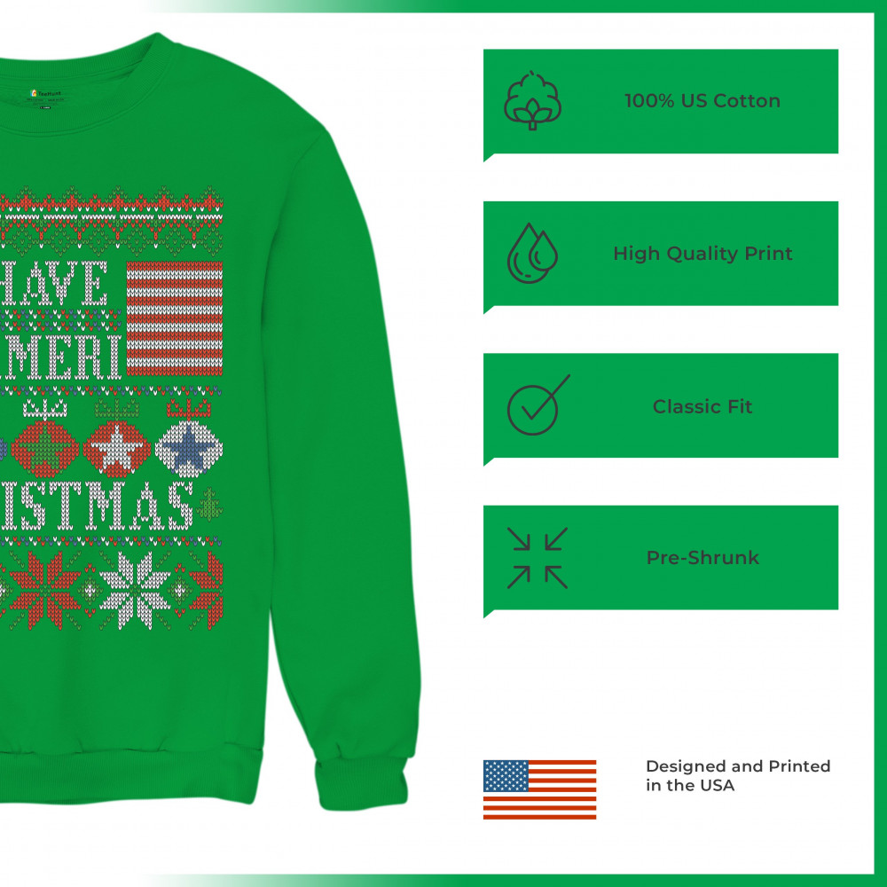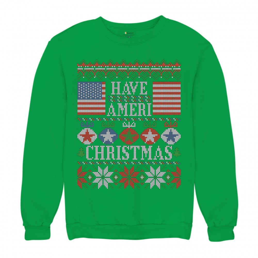 HAVE AMERI CHRISTMAS sweatshirt american flag ugly sweater patriotic crewneck green