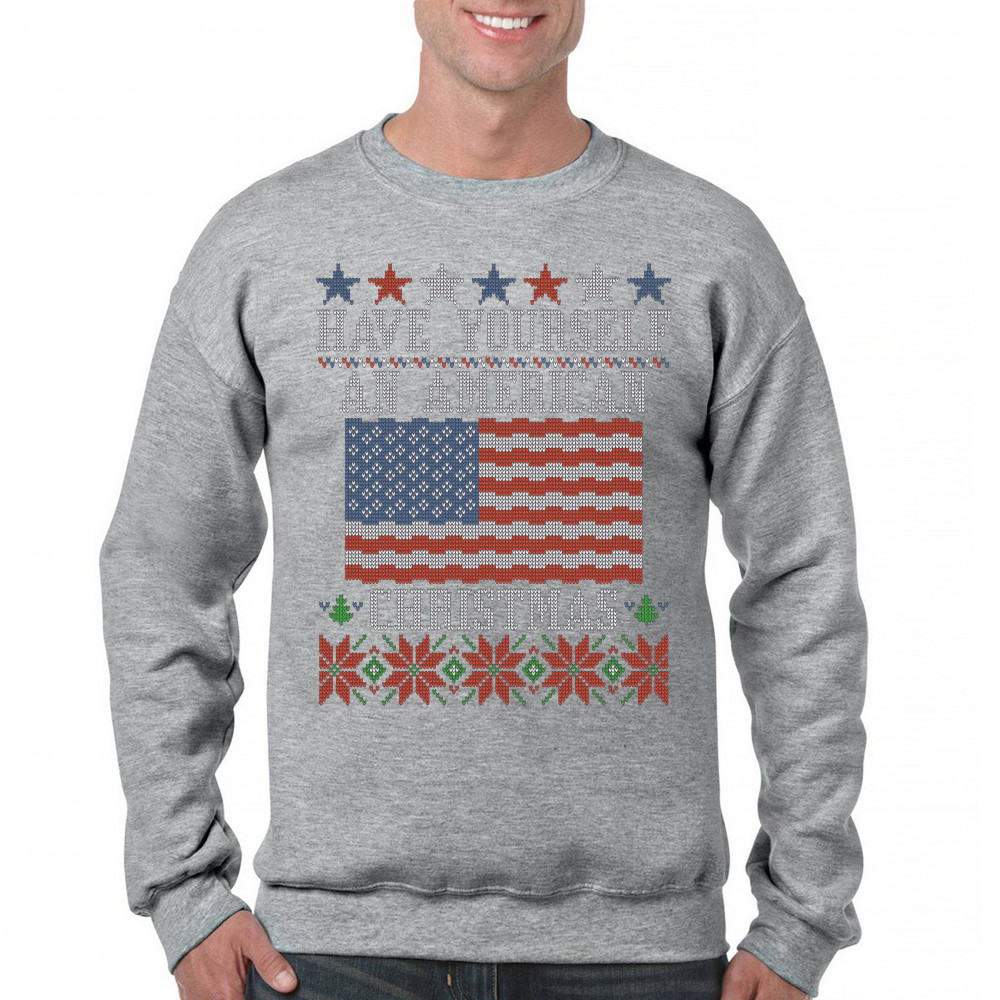 HAVE YOURSELF AN AMERICAN CHRISTMAS sweatshirt ugly sweater patriotic crewneck gray