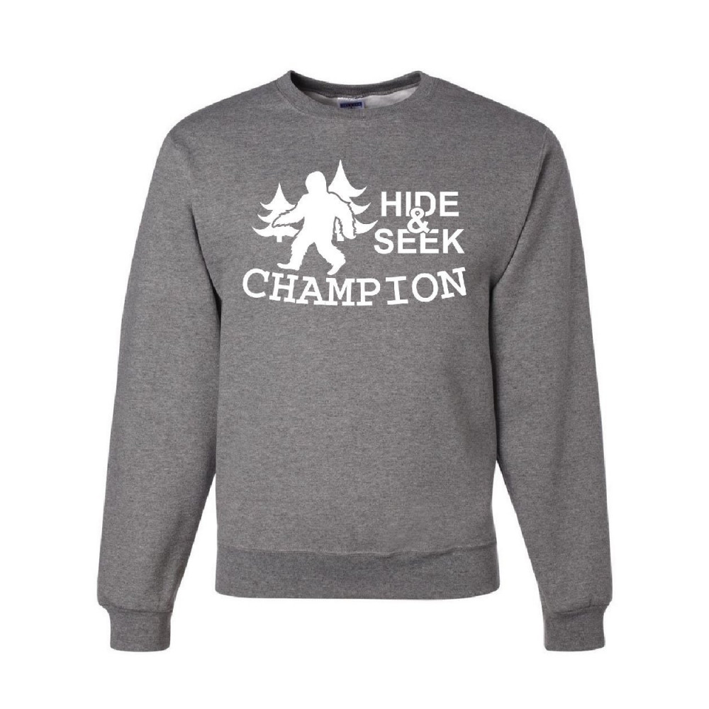 HIDE AND SEEK CHAMPION sweatshirt bigfoot yeti funny humor sweater gray