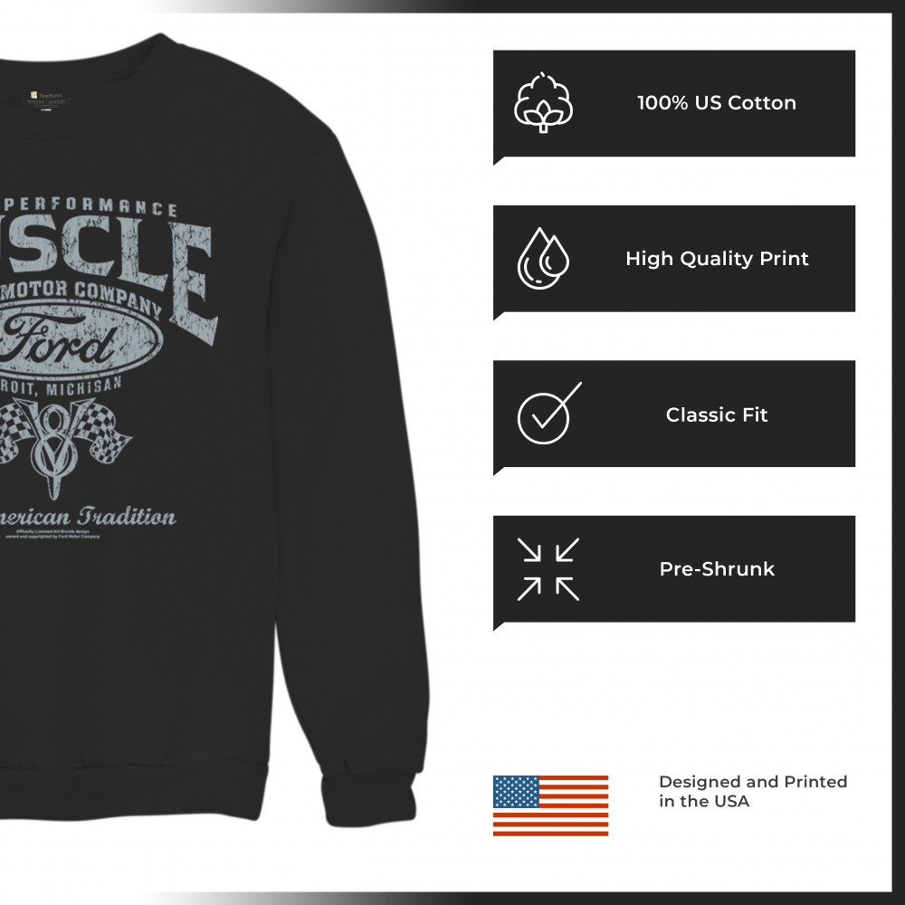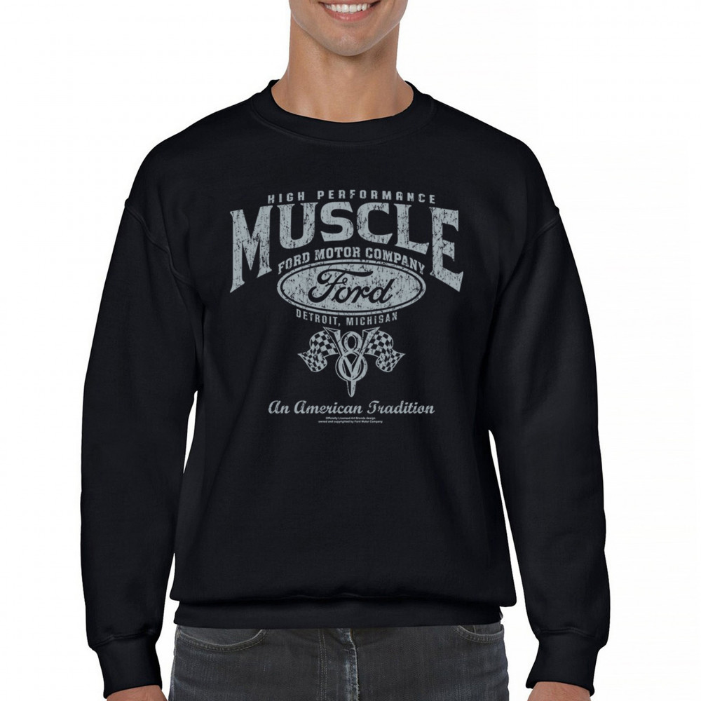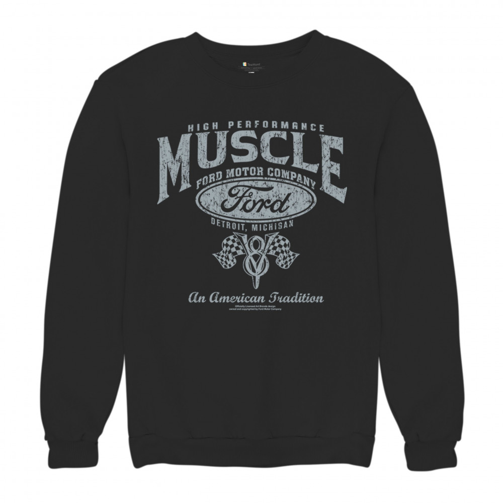 HIGH PERFORMANCE MUSCLE FORD sweatshirt american tradition v8 vintage crewneck black
