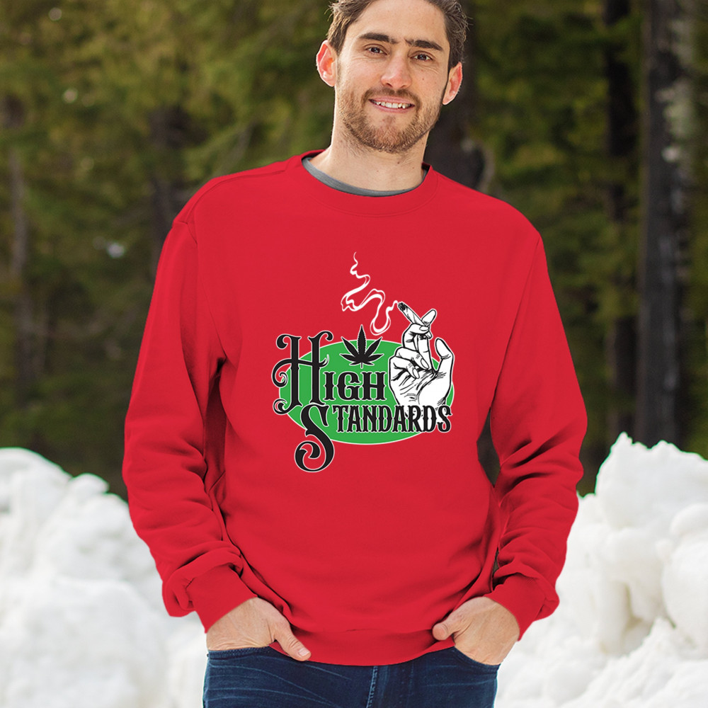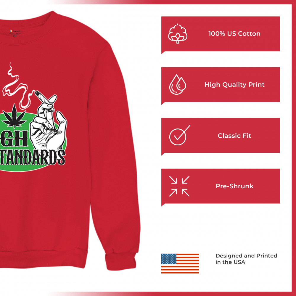 High Standards weed design with blunt humor and stoner pride. Features joint, cannabis leaf, pothead attitude, and classy chillout vibes.