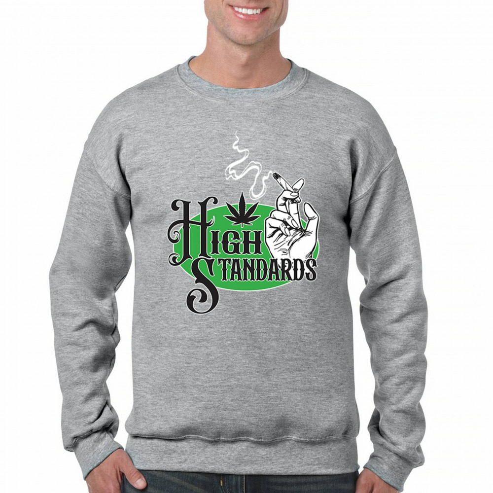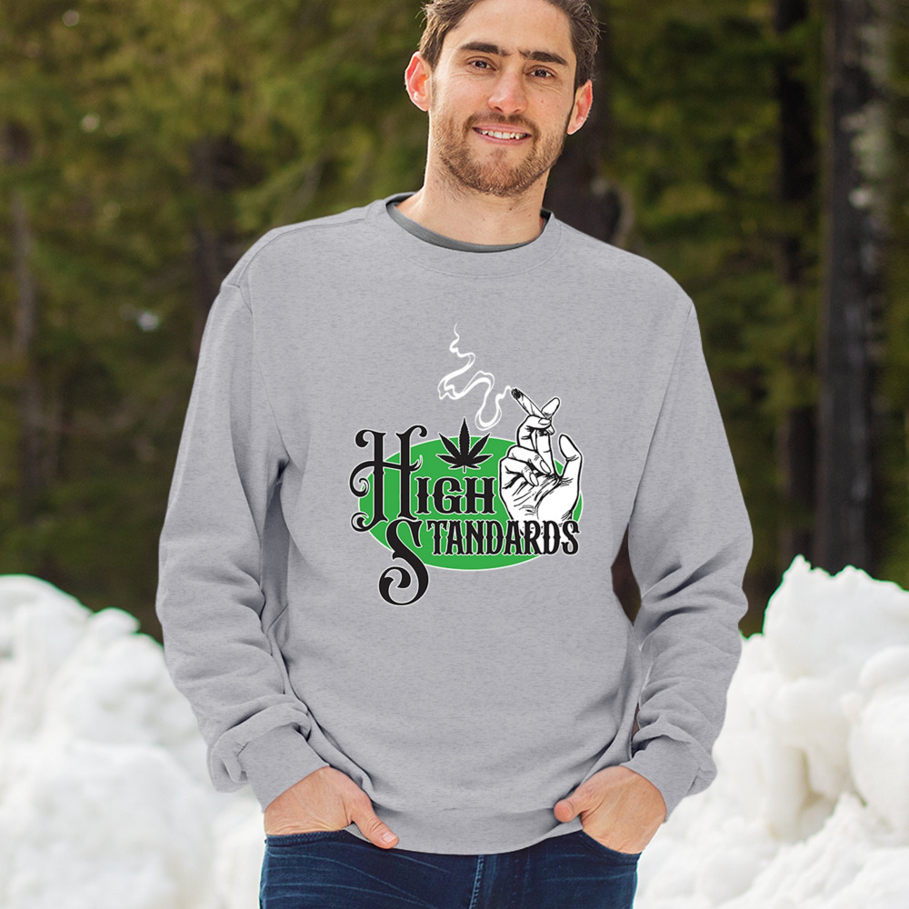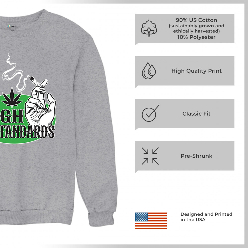 High Standards weed design with blunt humor and stoner pride. Features joint, cannabis leaf, pothead attitude, and classy chillout vibes.