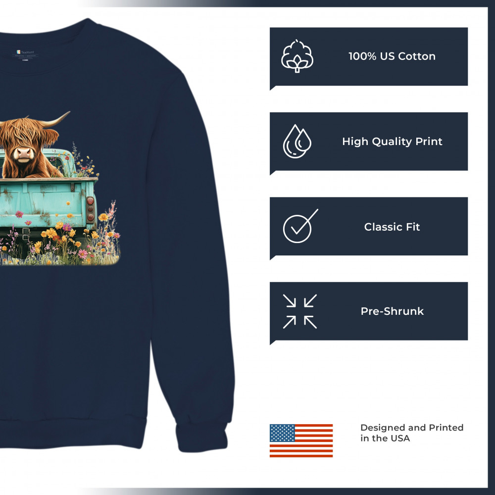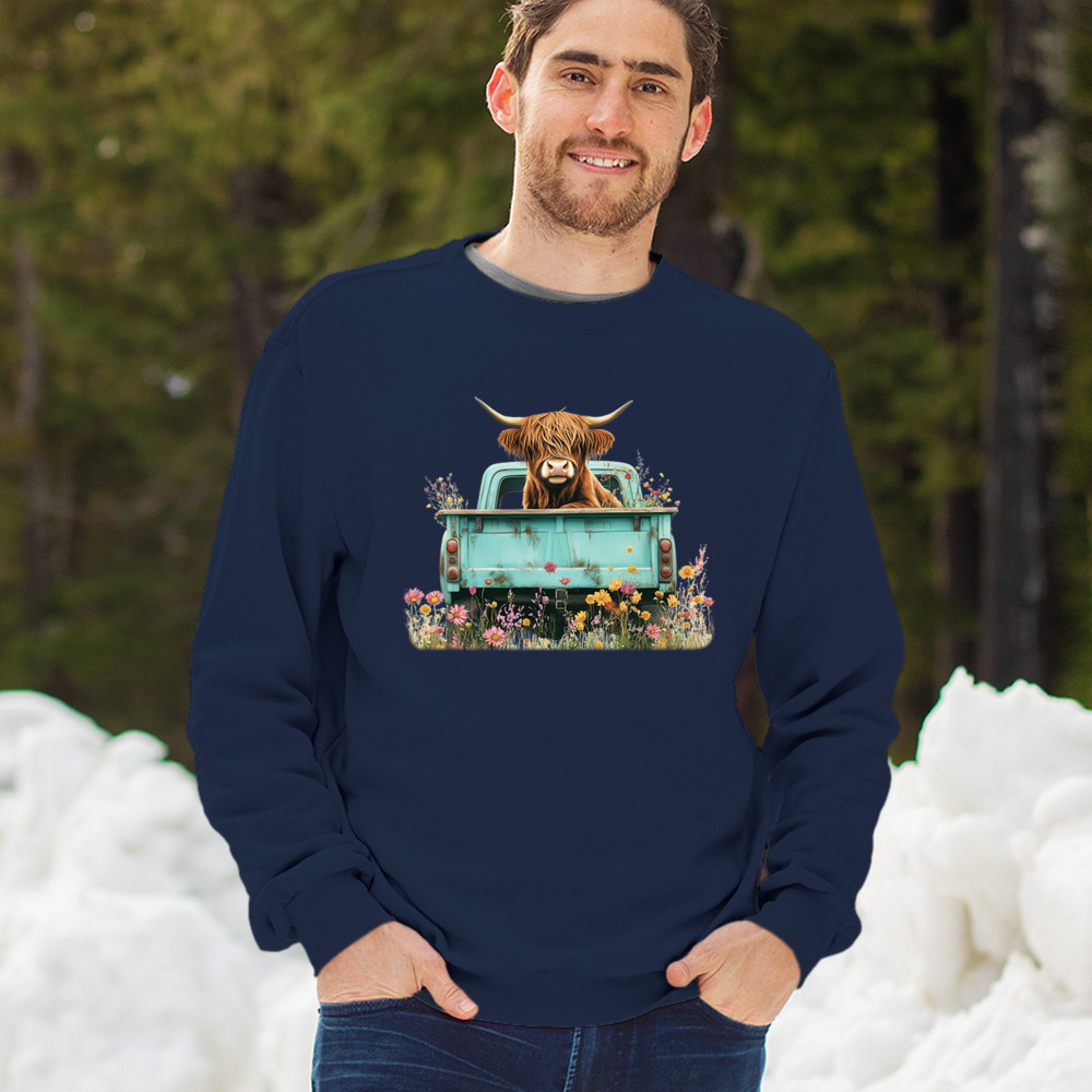 Celebrate rustic charm with this Highland Cow truck design, combining farmhouse floral truck art, boho ranch vibes, and country farmhouse shirt appeal. Perfect for cow lovers, barn style enthusiasts, and small town rural living. A vintage truck cow design that’s both cozy and stylish.
