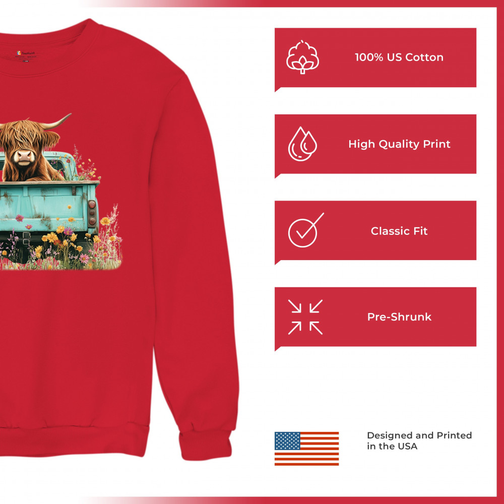 Celebrate rustic charm with this Highland Cow truck design, combining farmhouse floral truck art, boho ranch vibes, and country farmhouse shirt appeal. Perfect for cow lovers, barn style enthusiasts, and small town rural living. A vintage truck cow design that’s both cozy and stylish.