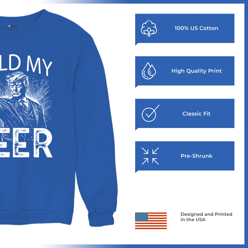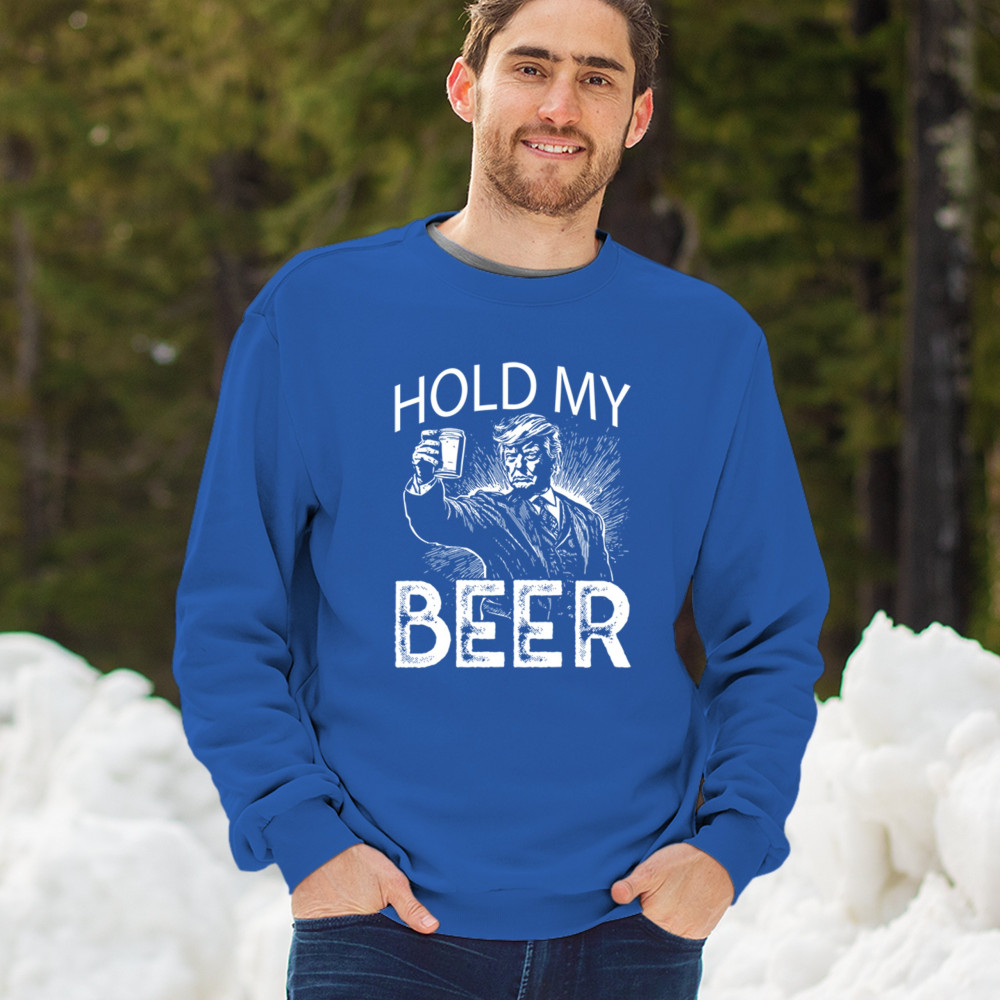 Celebrate the boldness of America First with the "Hold My Beer" design. A tribute to Trump supporters, conservatives, and proud patriots, this graphic humorously encapsulates the resilience and pride of the Red Wave movement. Perfect for rallies, casual gatherings, and those who proudly stand with Donald J. Trump, the 47th President, in the fight for freedom and the people's mandate.