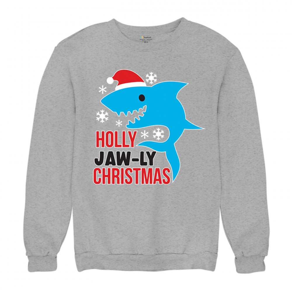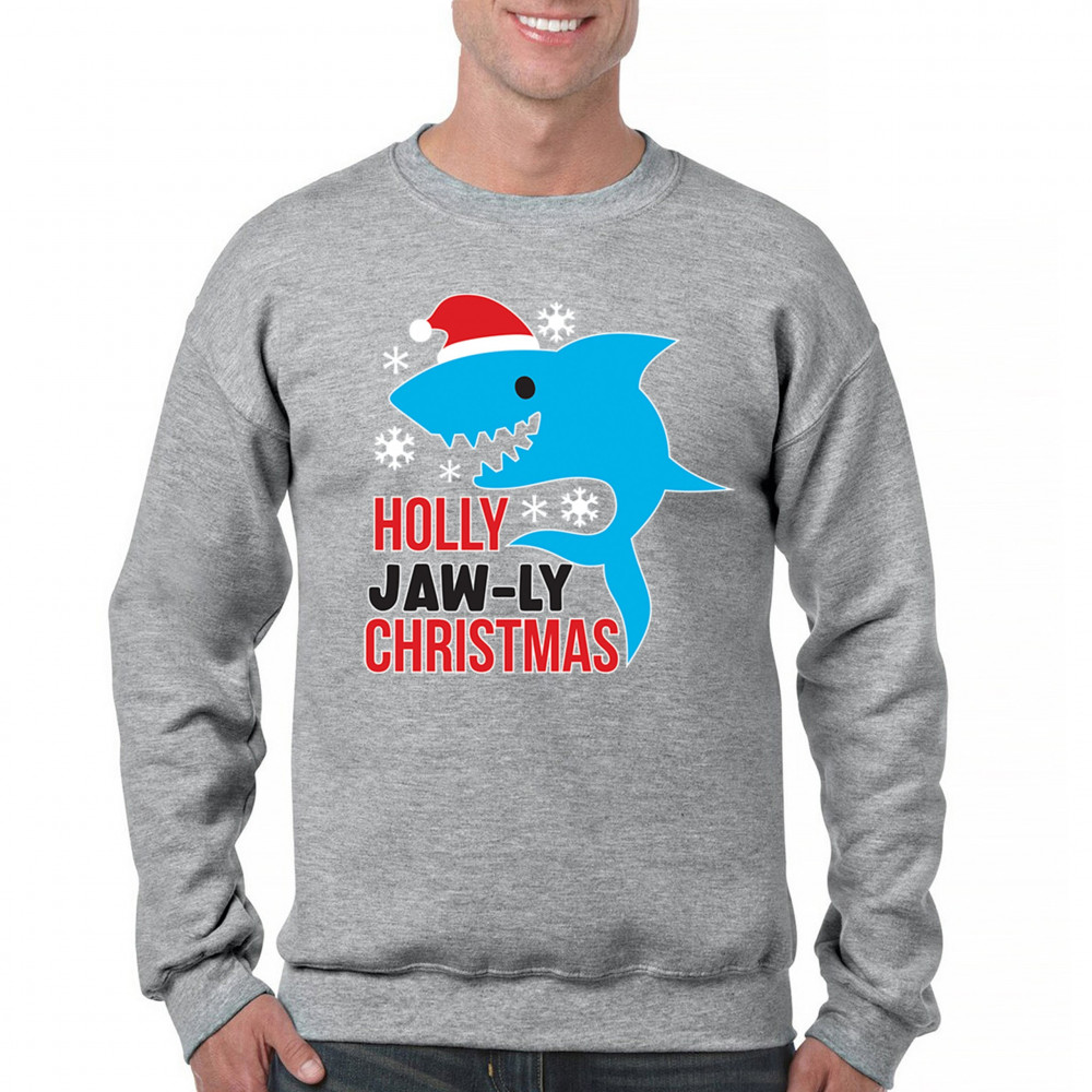 A fun Holly Jaw-ly Christmas design featuring a cheerful shark in a Santa hat with bright snowflake accents. Ideal for beach lovers, ocean fans, pun humor enthusiasts, Christmas parties, festive gatherings, white elephant events, and lighthearted winter celebrations. Brings a playful coastal vibe to holiday season outfits and gifts.