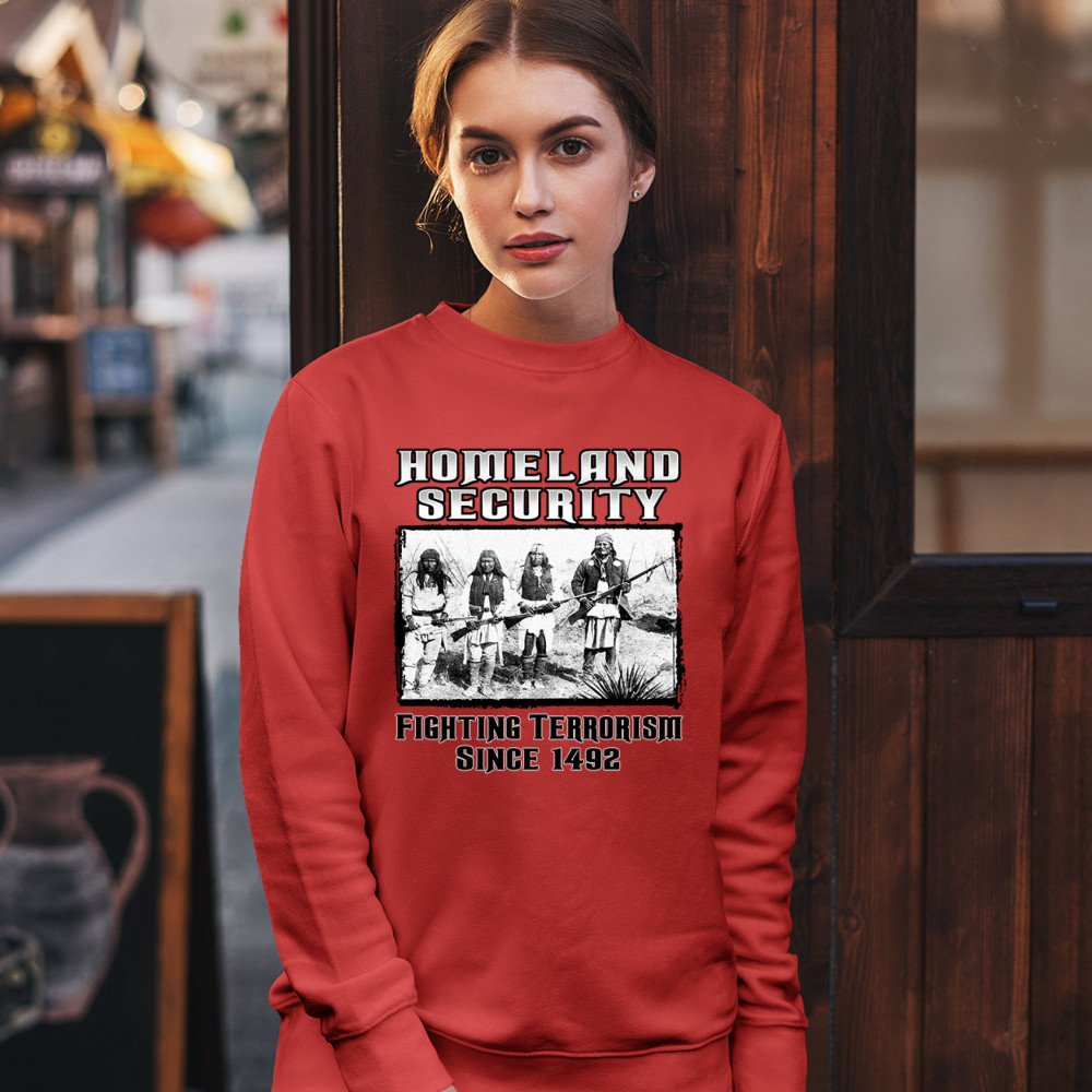 HOMELAND SECURITY sweatshirt native american indigenous patriotic crewneck red
