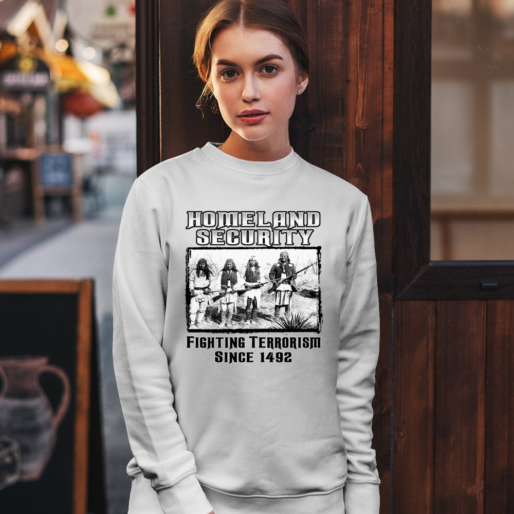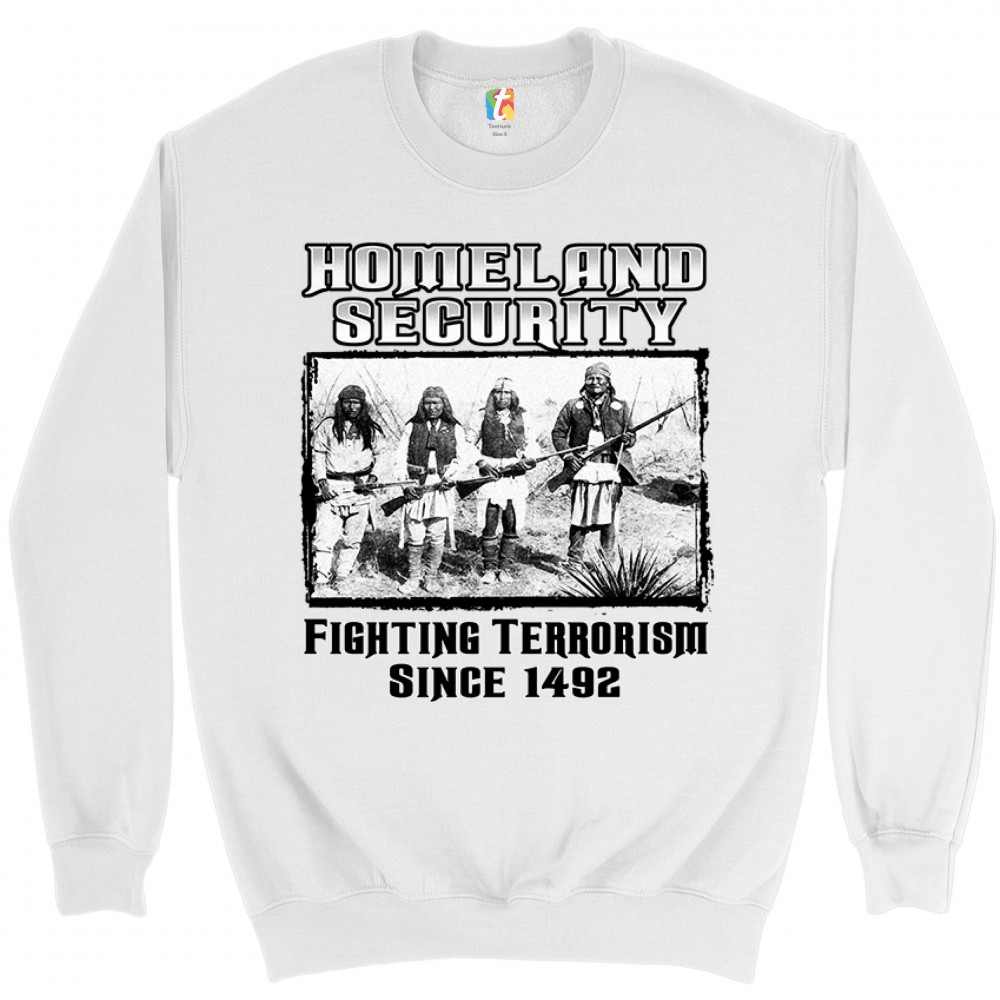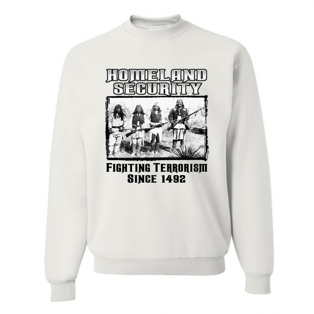 HOMELAND SECURITY sweatshirt native american indigenous patriotic crewneck white