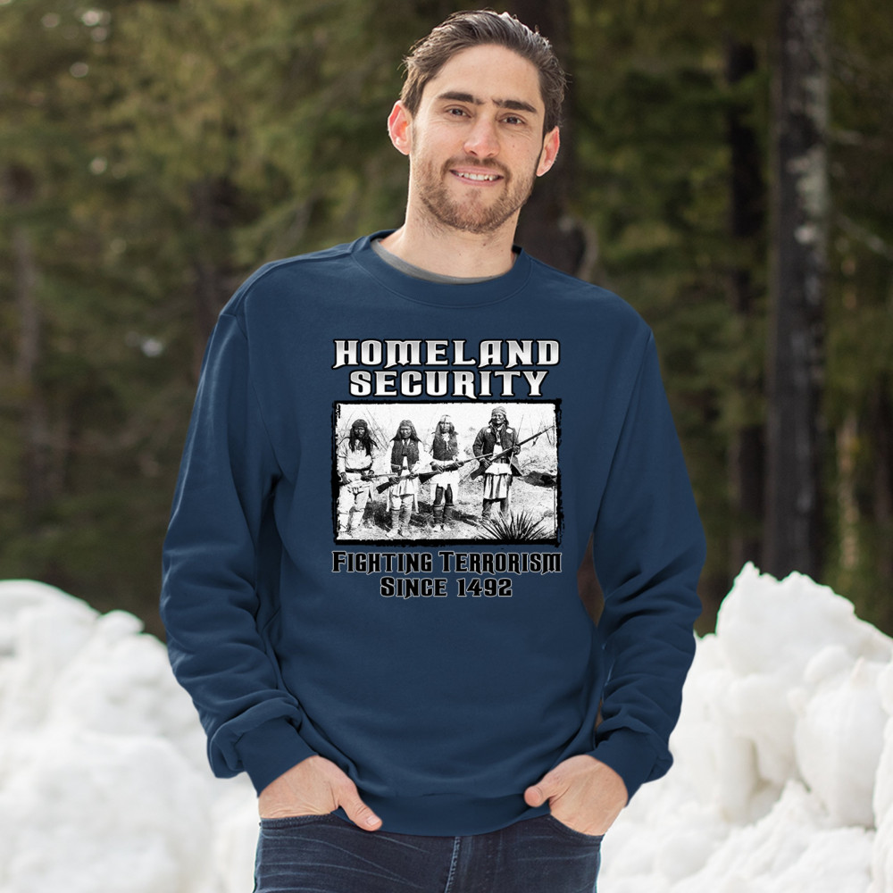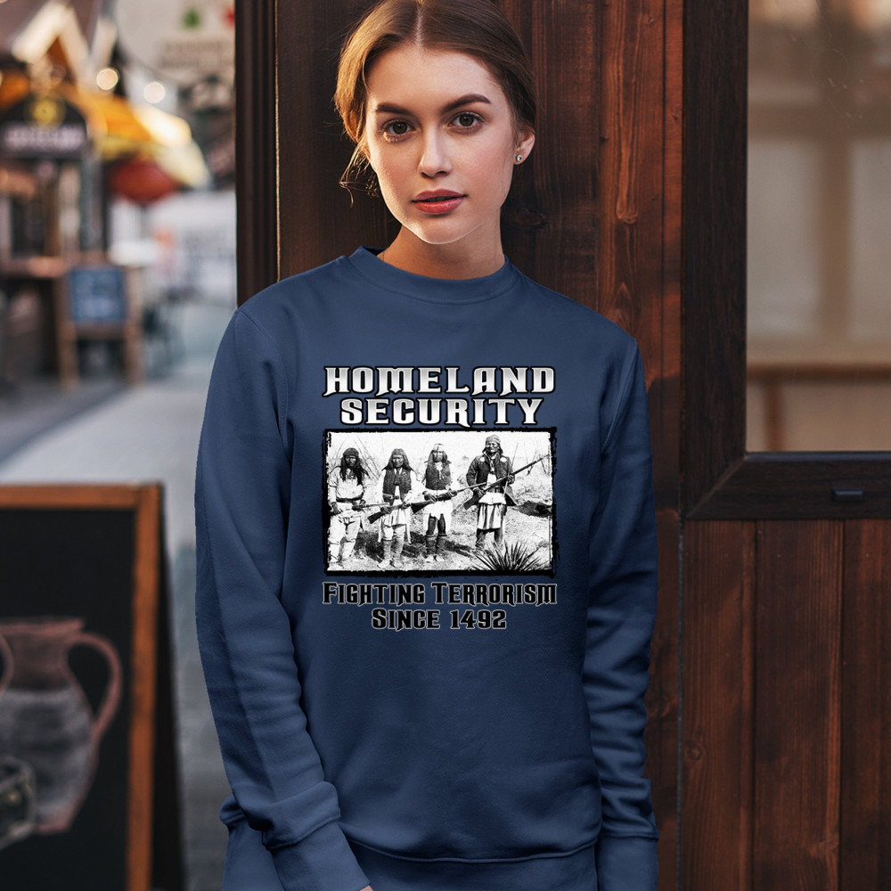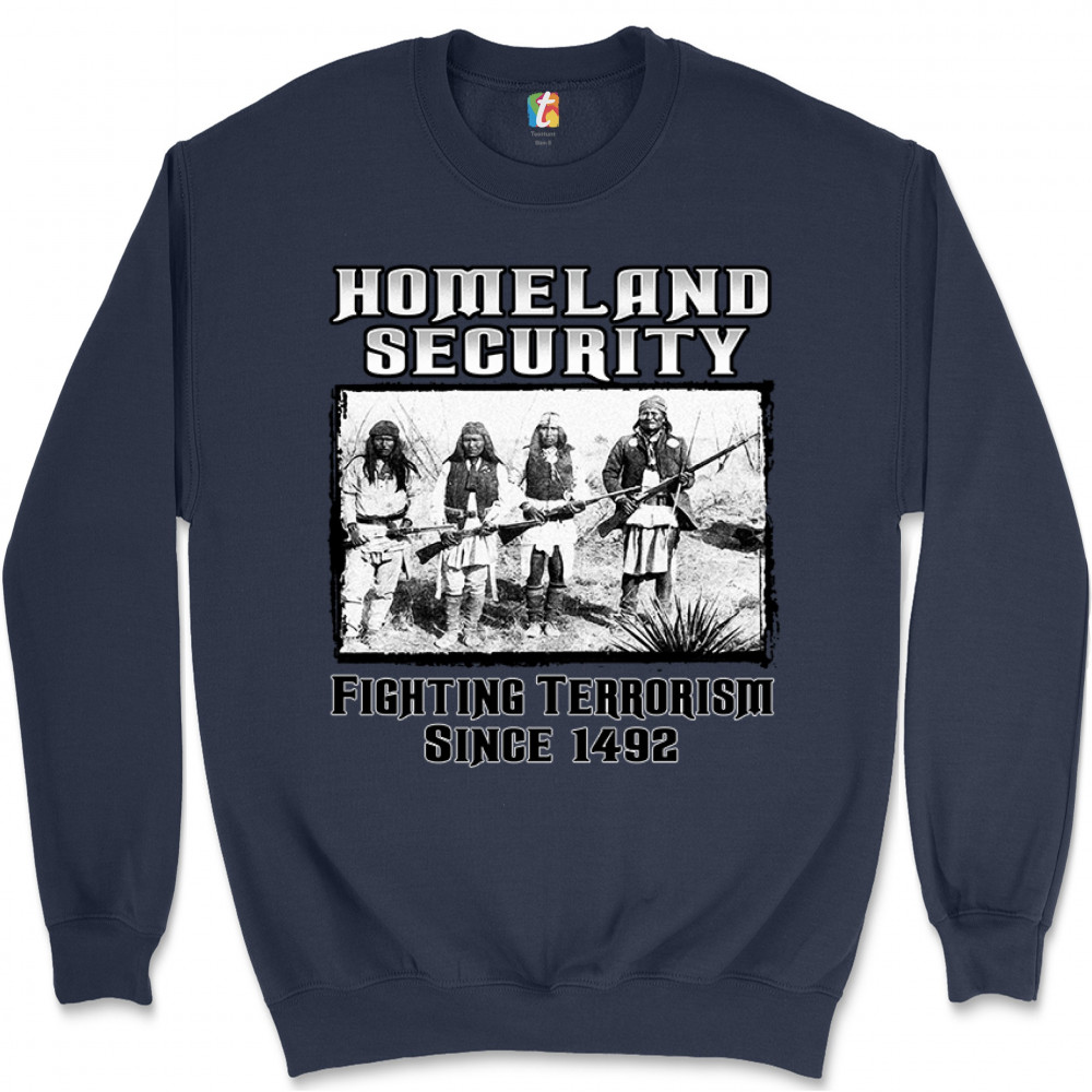 HOMELAND SECURITY sweatshirt native american indigenous patriotic crewneck navy blue