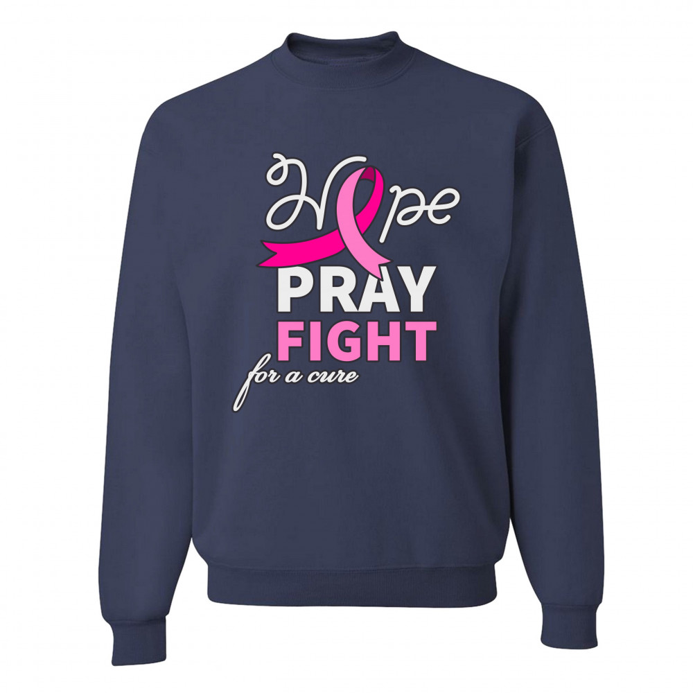 HOPE PRAY FIGHT FOR A CURE sweatshirt cancer awareness pink ribbon crewneck navy blue