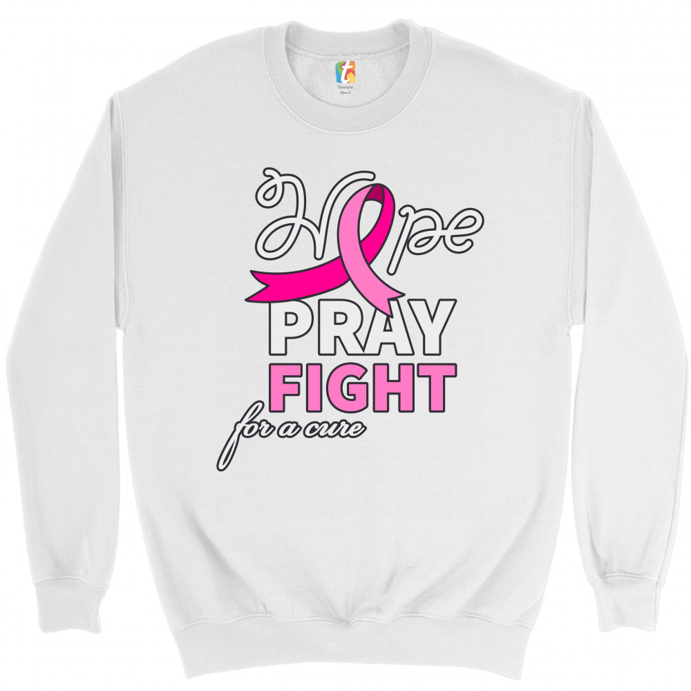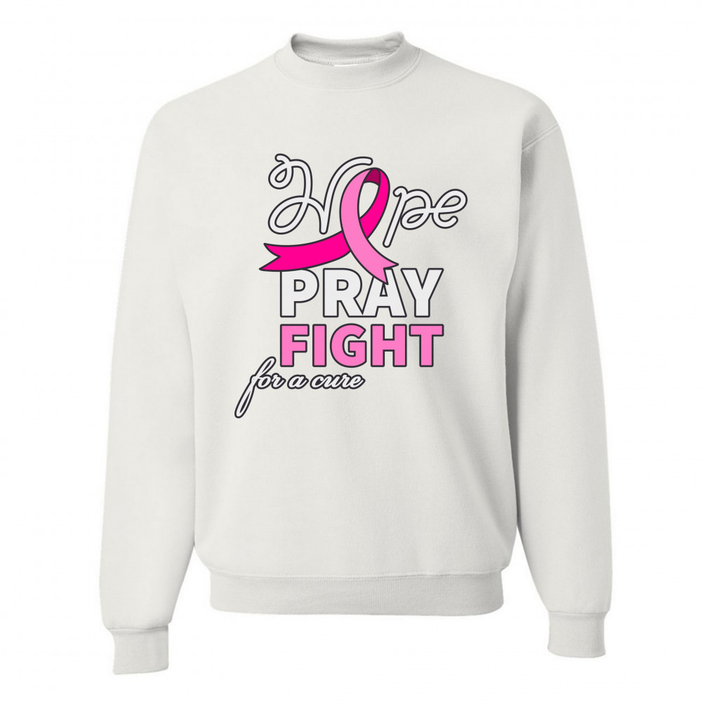 HOPE PRAY FIGHT FOR A CURE sweatshirt cancer awareness pink ribbon crewneck white