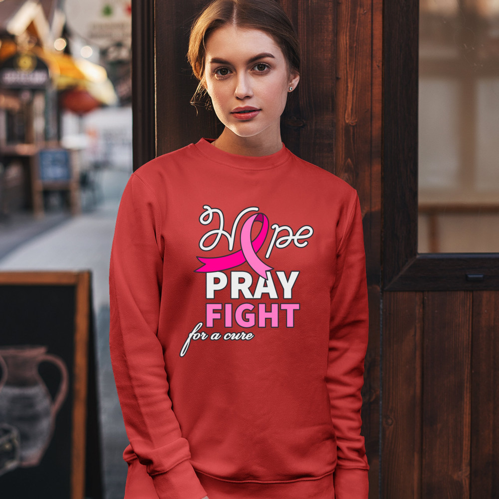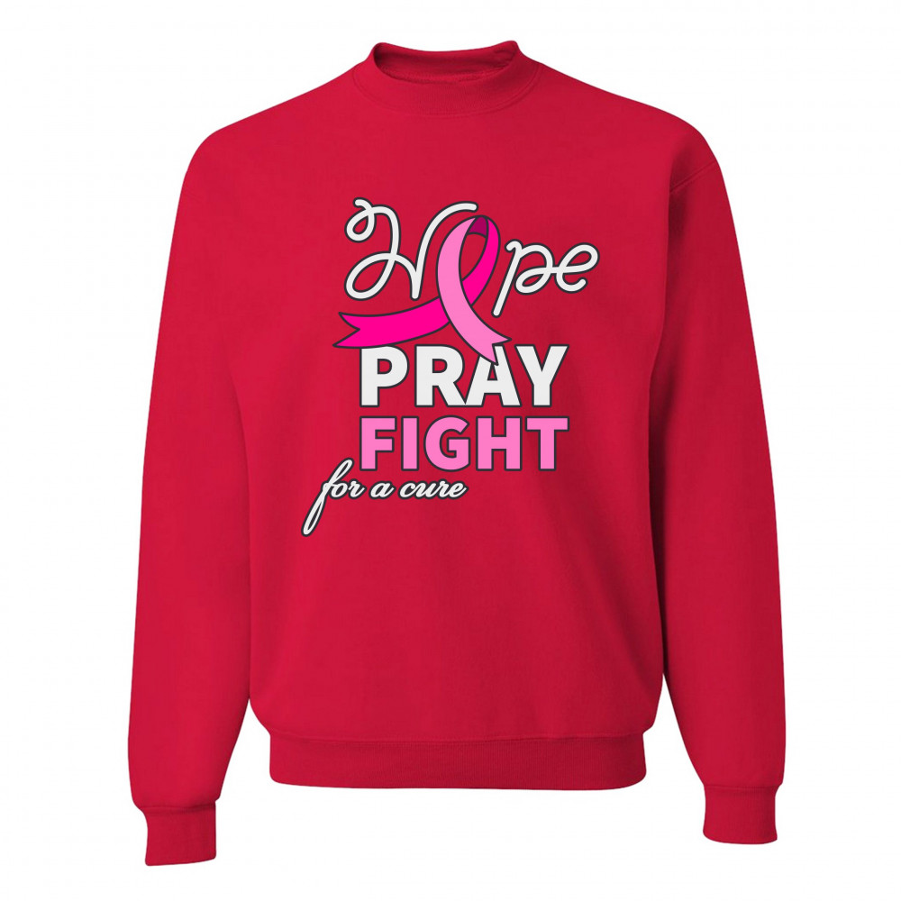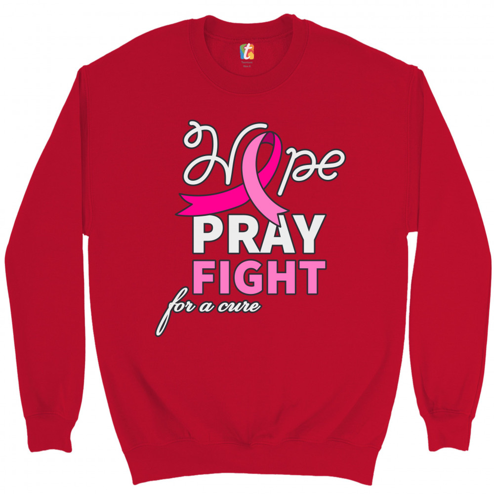 HOPE PRAY FIGHT FOR A CURE sweatshirt cancer awareness pink ribbon crewneck red