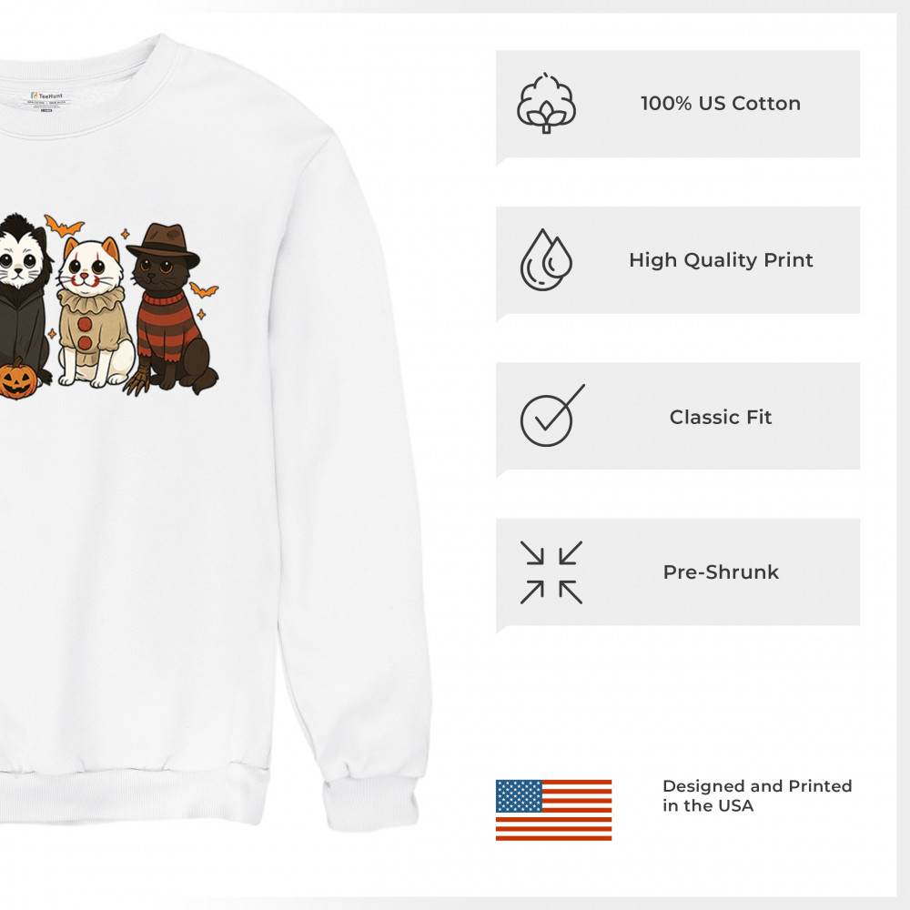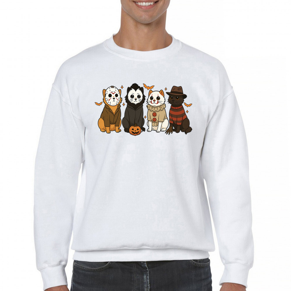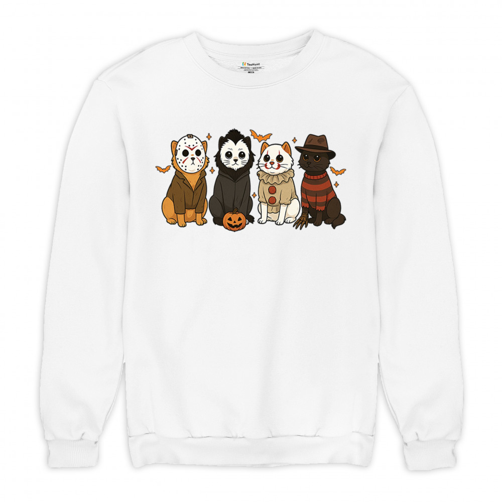 Get into the Halloween spirit with this Horror Cats Halloween design featuring spooky felines in creepy costumes. From Jack o Lantern details to Haunted House energy, it’s perfect for celebrating October 31 with festive style. A playful blend of Halloween vibes, autumn night chills, and witch-inspired magic, this design makes a great Halloween outfit for cat lovers and spooky fans alike.
