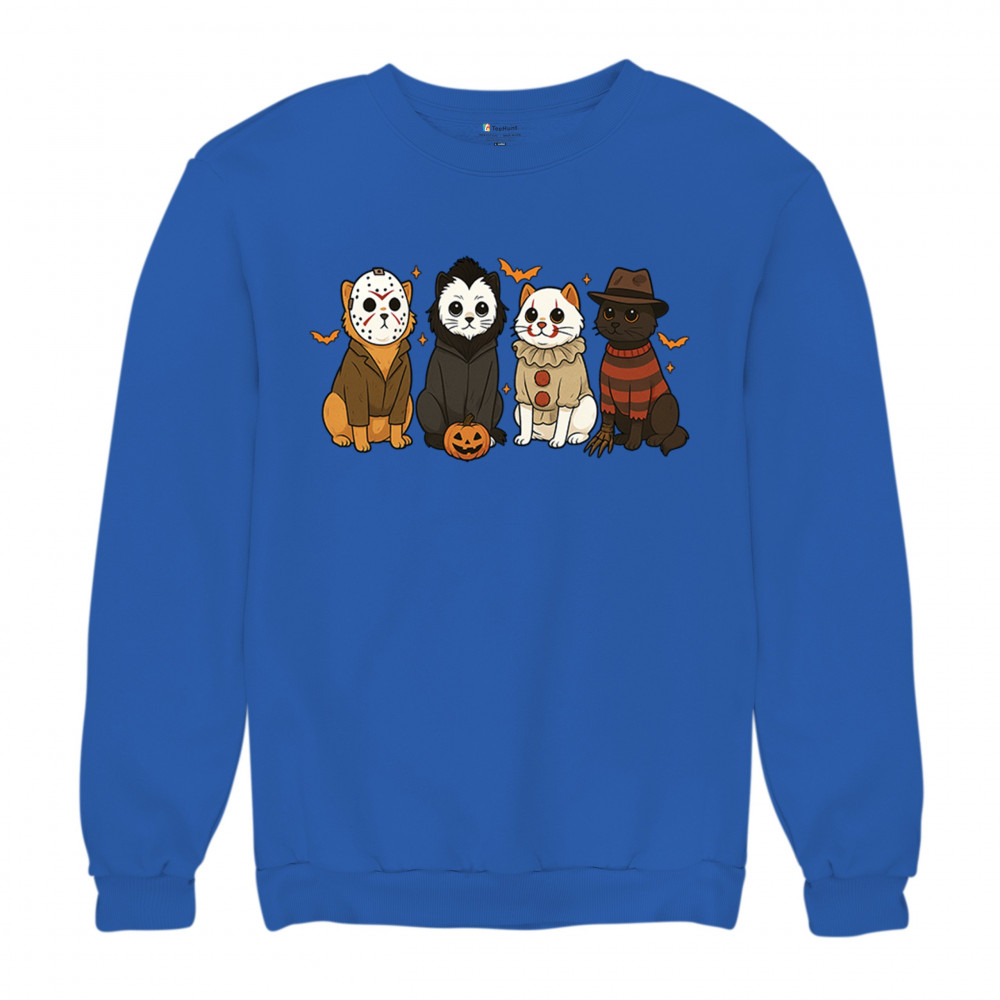 Get into the Halloween spirit with this Horror Cats Halloween design featuring spooky felines in creepy costumes. From Jack o Lantern details to Haunted House energy, it’s perfect for celebrating October 31 with festive style. A playful blend of Halloween vibes, autumn night chills, and witch-inspired magic, this design makes a great Halloween outfit for cat lovers and spooky fans alike.
