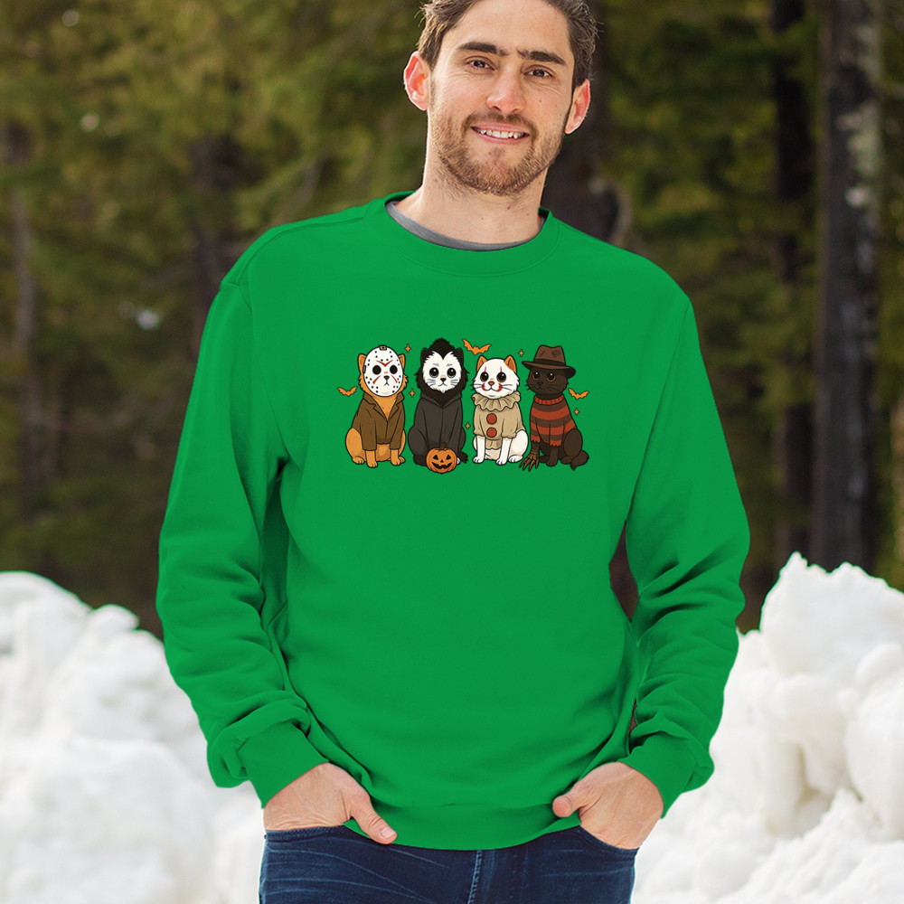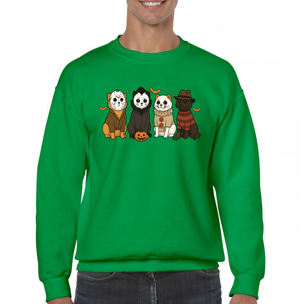 Get into the Halloween spirit with this Horror Cats Halloween design featuring spooky felines in creepy costumes. From Jack o Lantern details to Haunted House energy, it’s perfect for celebrating October 31 with festive style. A playful blend of Halloween vibes, autumn night chills, and witch-inspired magic, this design makes a great Halloween outfit for cat lovers and spooky fans alike.