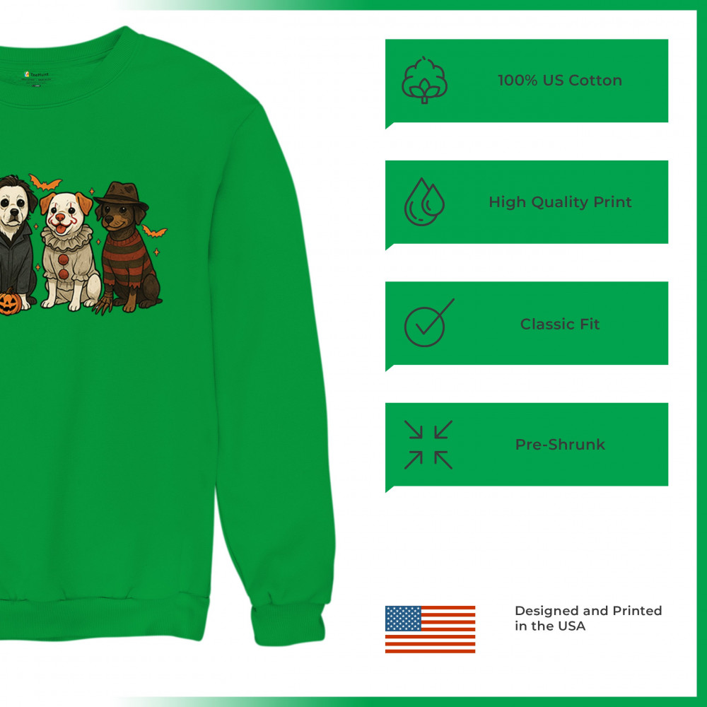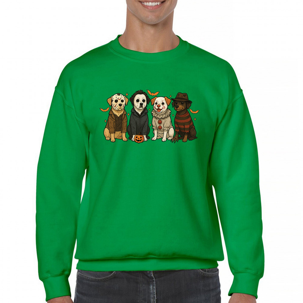 Celebrate Halloween with the Horror Dogs design featuring pups in creepy costumes inspired by spooky icons. A perfect pick for October 31 haunted house visits, autumn nights, or parties full of Halloween vibes. Whether you love dogs, witches, or pumpkin head fun, this festive design makes a playful addition to the spooky season.