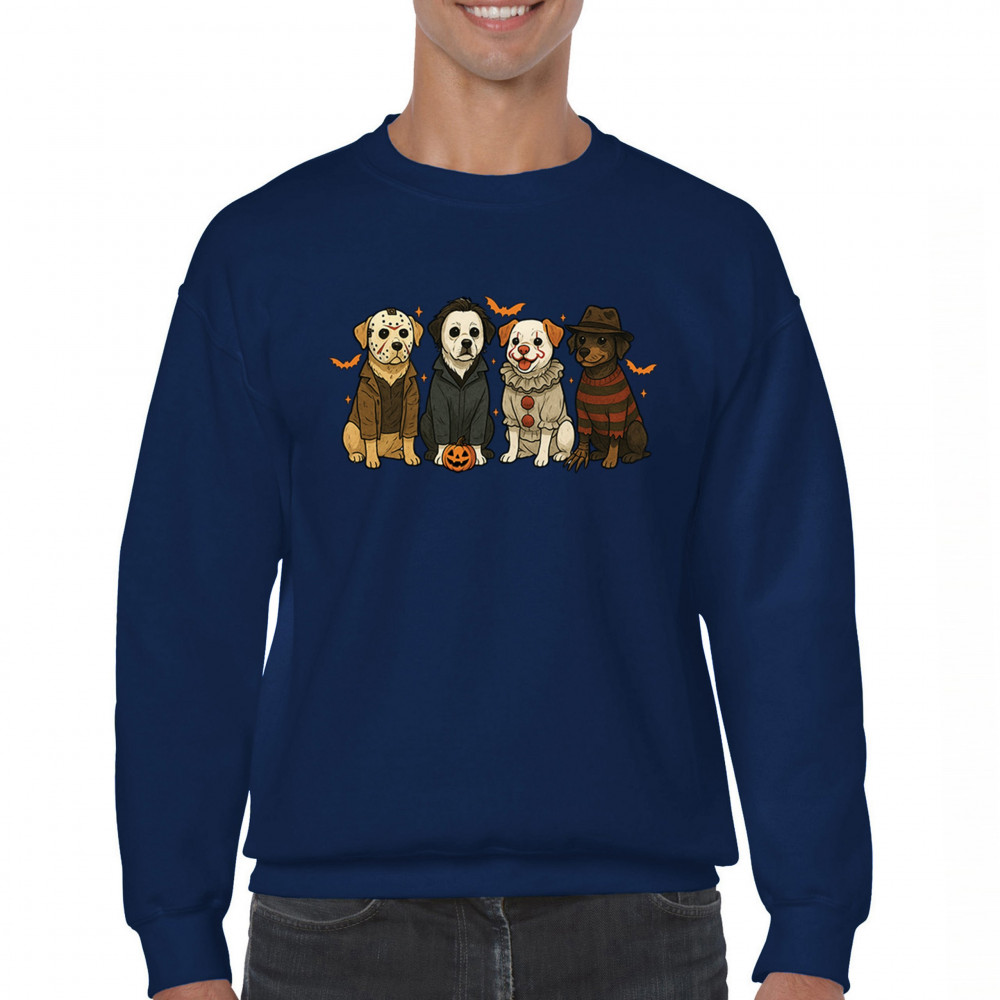 Celebrate Halloween with the Horror Dogs design featuring pups in creepy costumes inspired by spooky icons. A perfect pick for October 31 haunted house visits, autumn nights, or parties full of Halloween vibes. Whether you love dogs, witches, or pumpkin head fun, this festive design makes a playful addition to the spooky season.