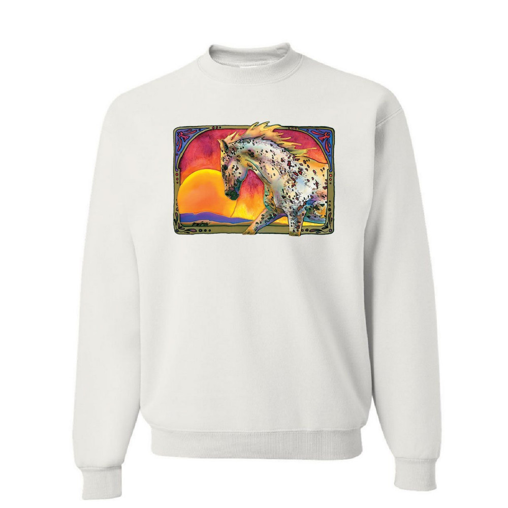 HORSE PRANCING IN SUNSET sweatshirt animal wildlife mare stallion sweater white