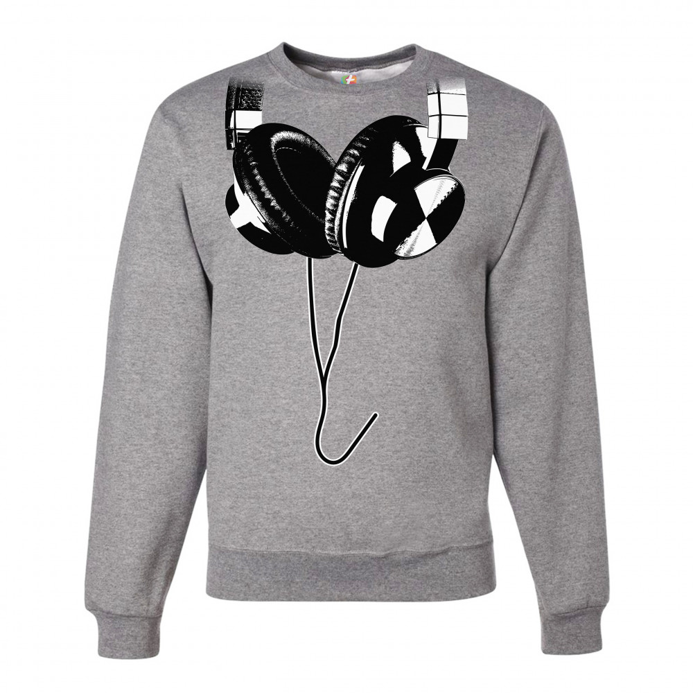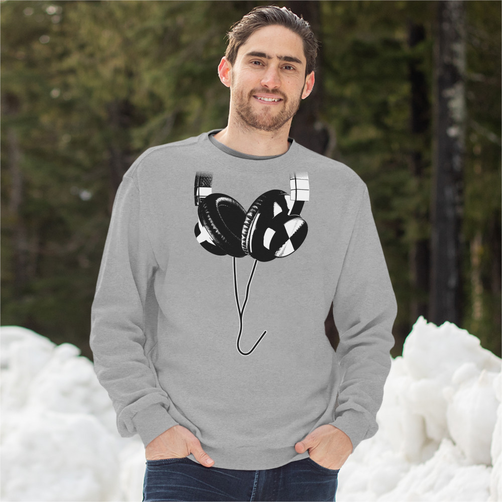 HUGE HANGING HEADPHONES sweatshirt dj music crewneck gray