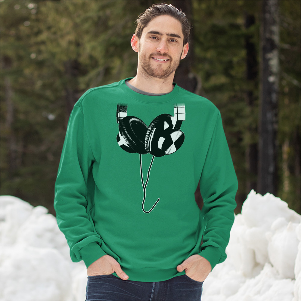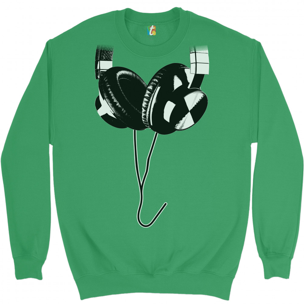 HUGE HANGING HEADPHONES sweatshirt dj music crewneck green