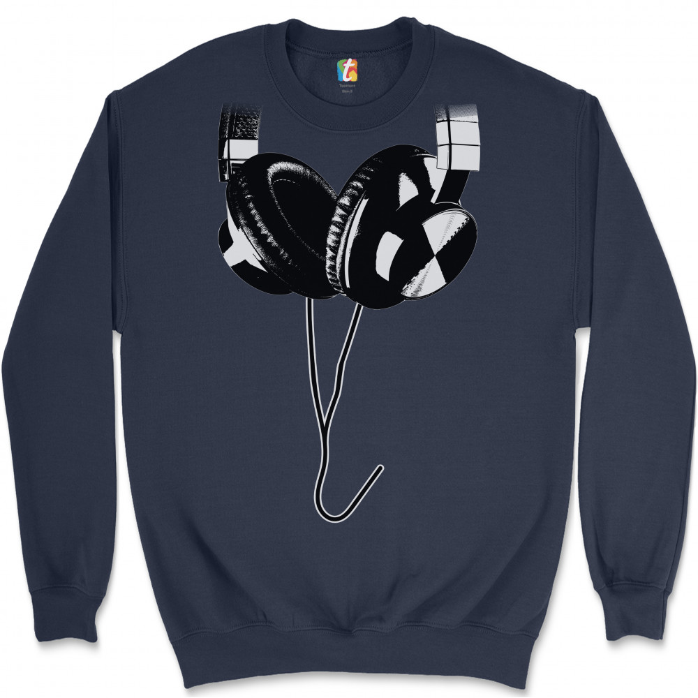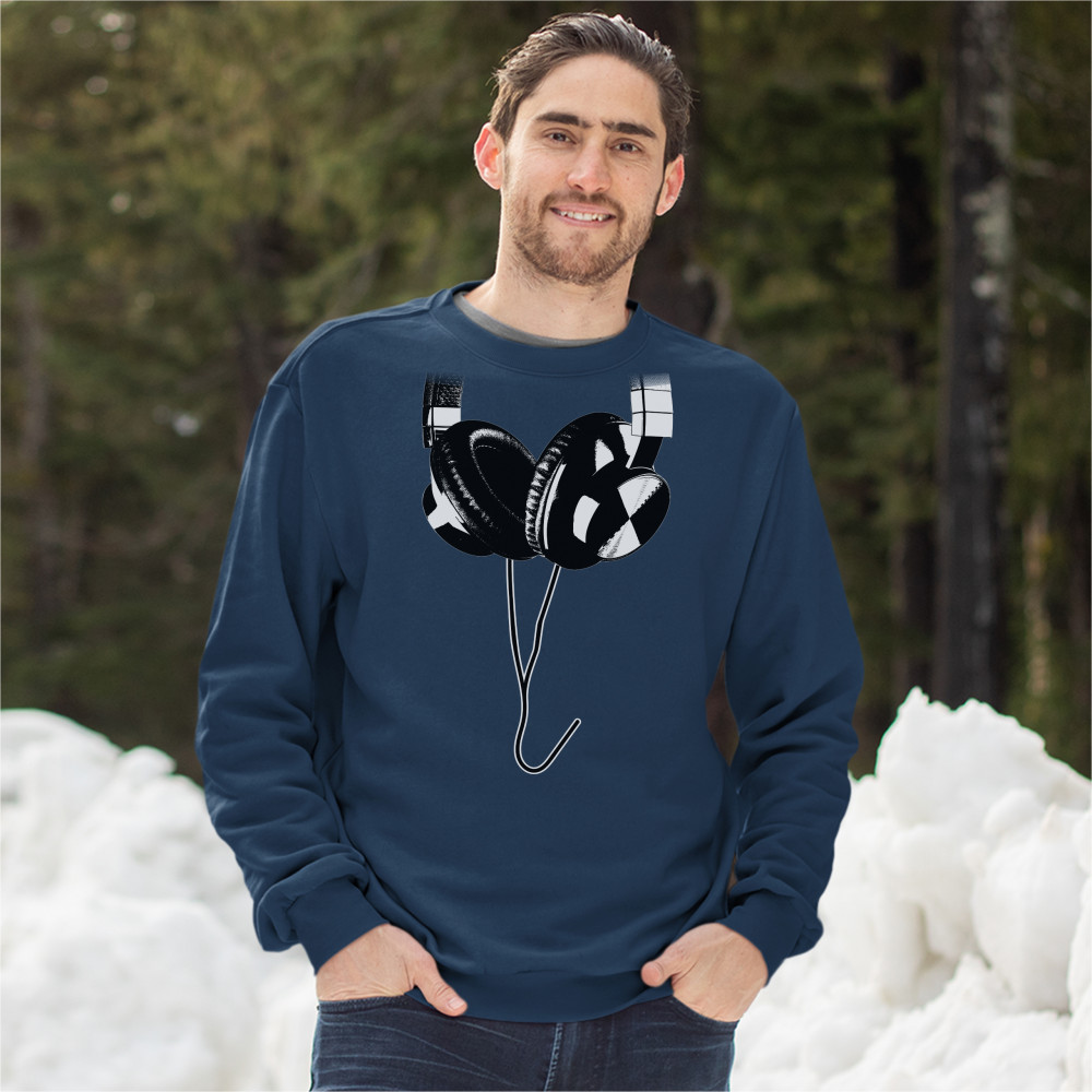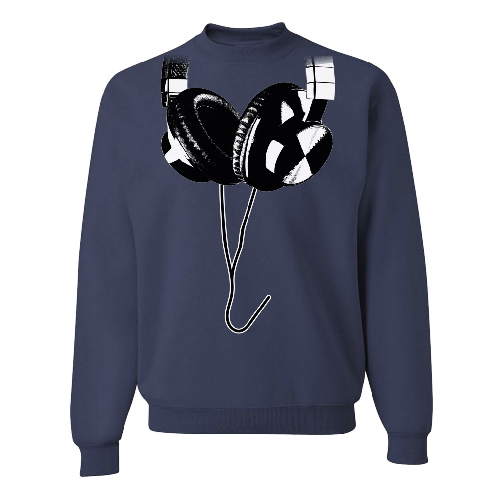 HUGE HANGING HEADPHONES sweatshirt dj music crewneck navy blue