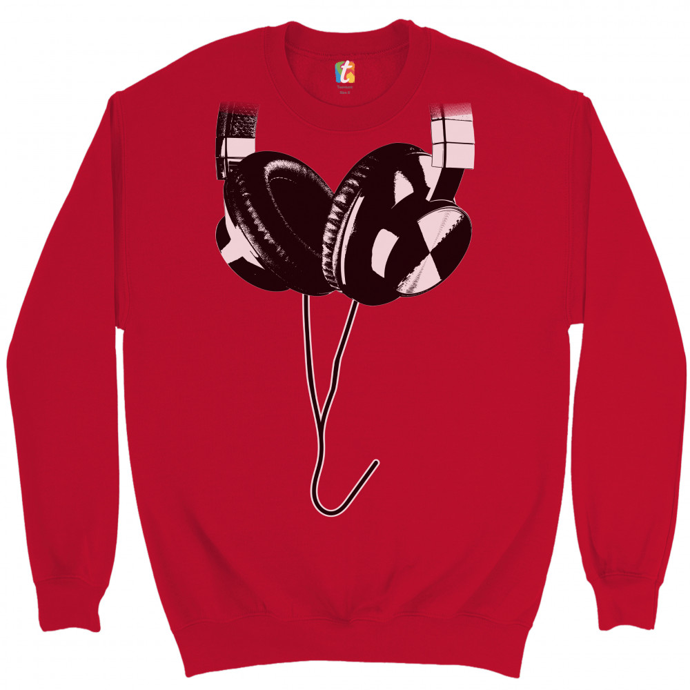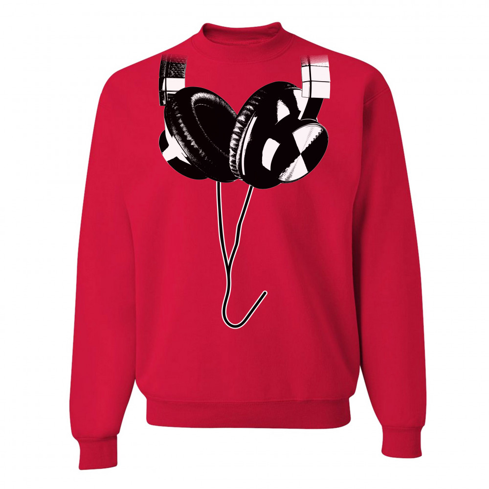 HUGE HANGING HEADPHONES sweatshirt dj music crewneck red
