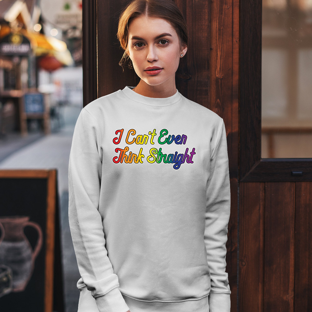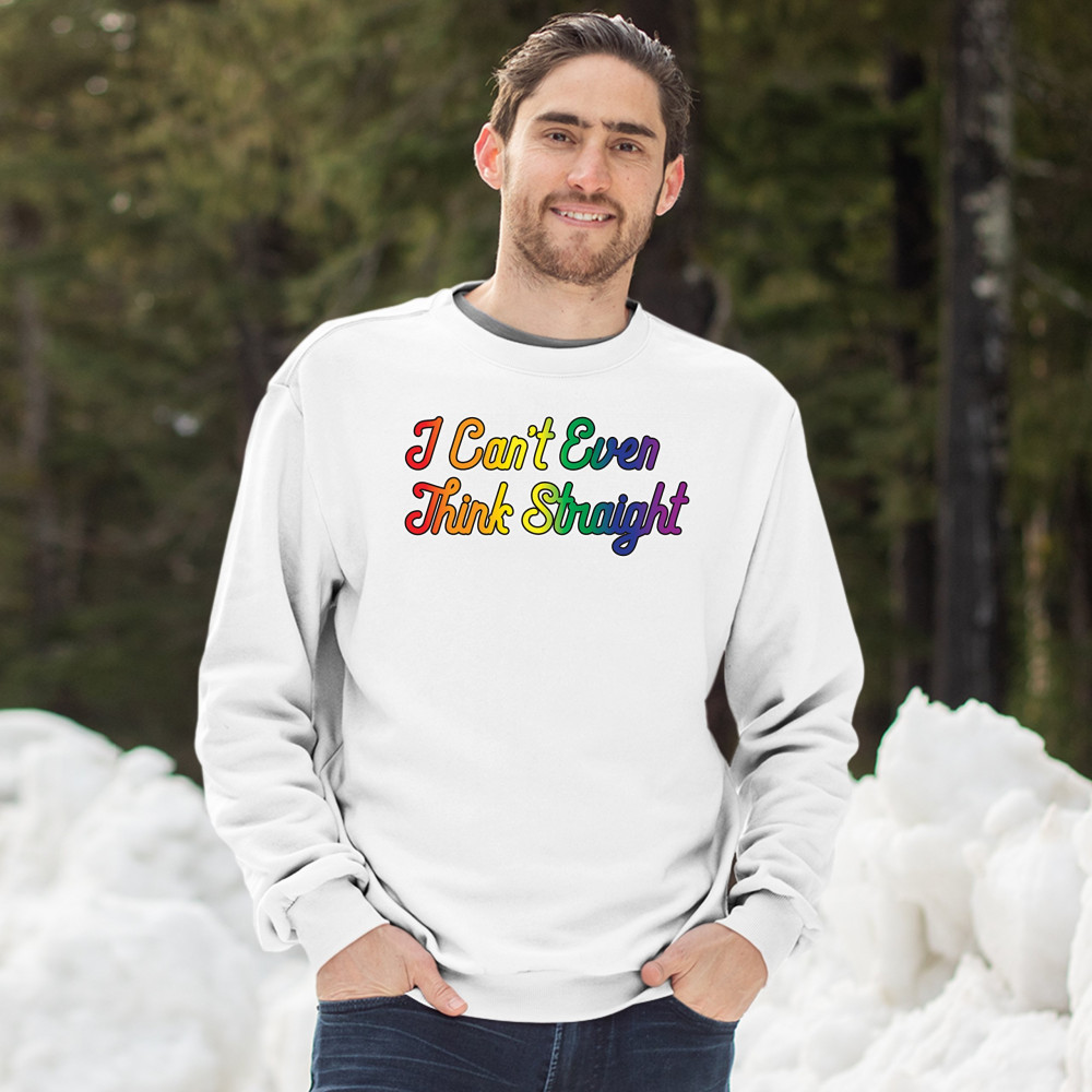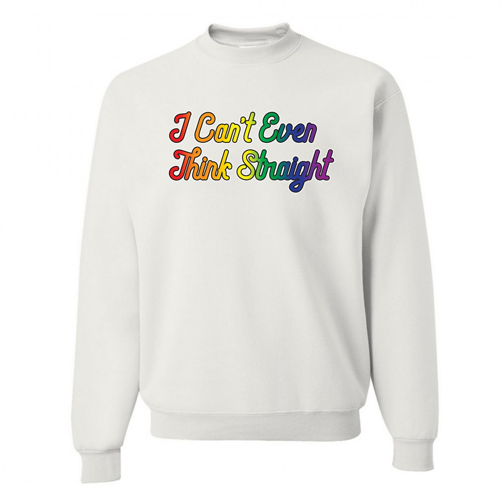 I CAN'T EVEN THINK STRAIGHT sweatshirt lgbt rainbow gay pride funny crewneck white
