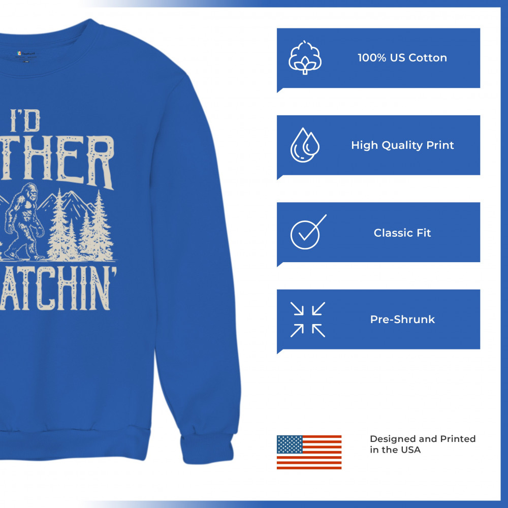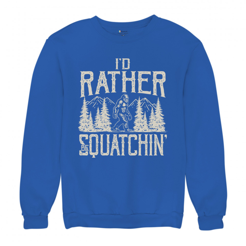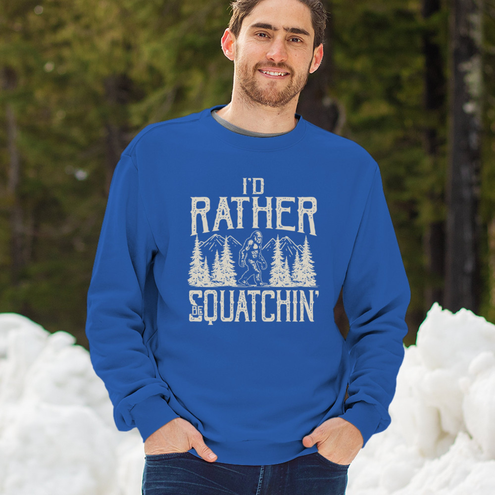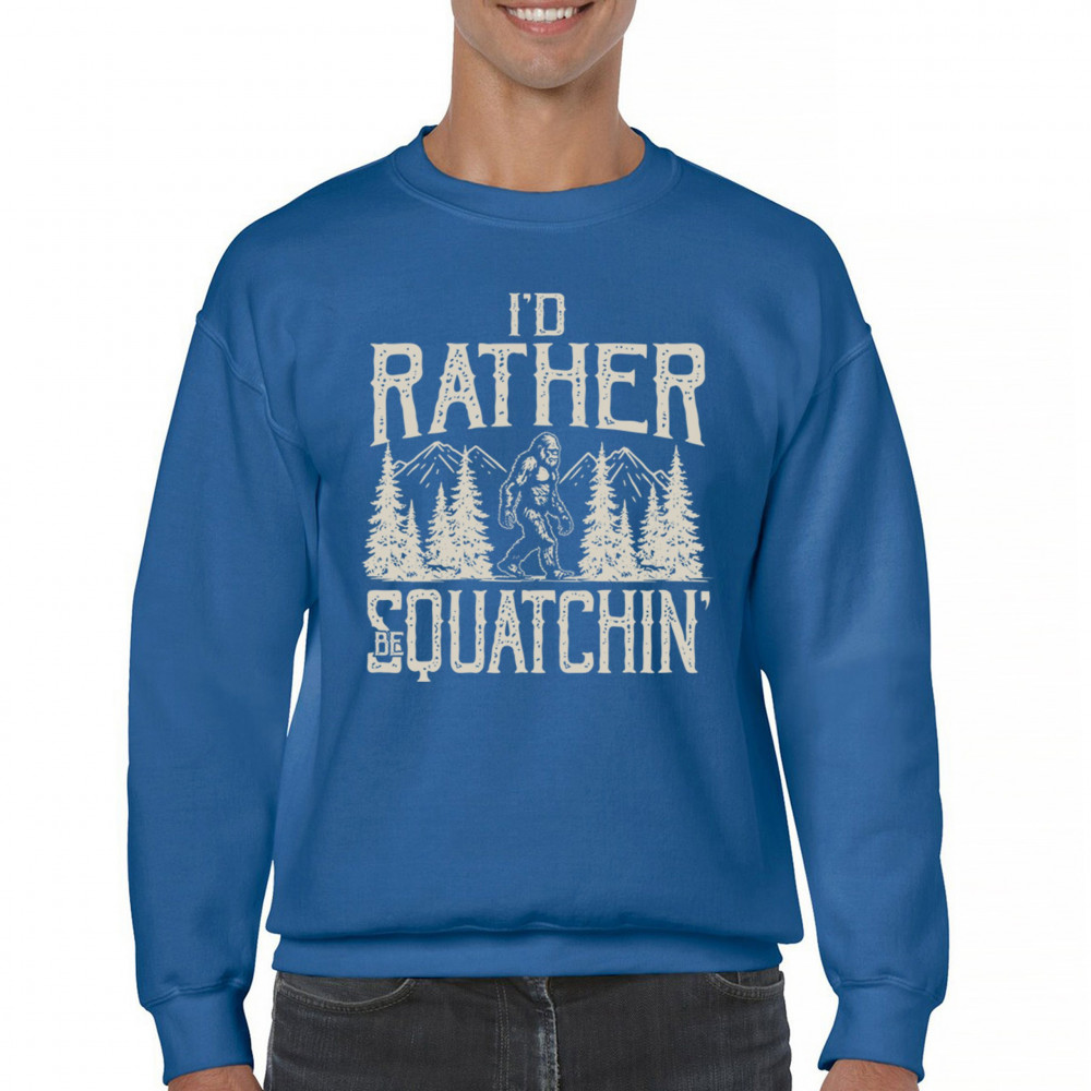 "I’d Rather Be Squatchin’" – A bold design for Bigfoot fans and outdoor adventurers, featuring Sasquatch in a wilderness setting. Perfect for hikers and cryptid enthusiasts!