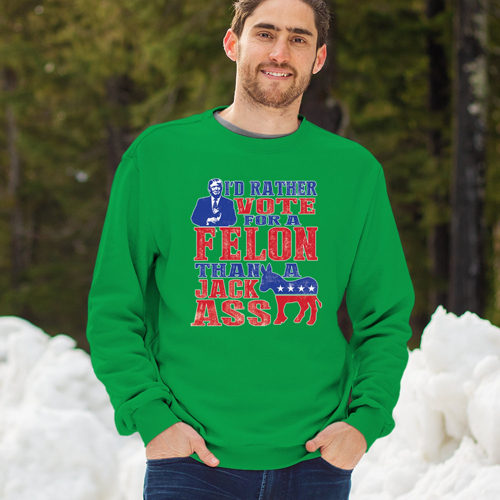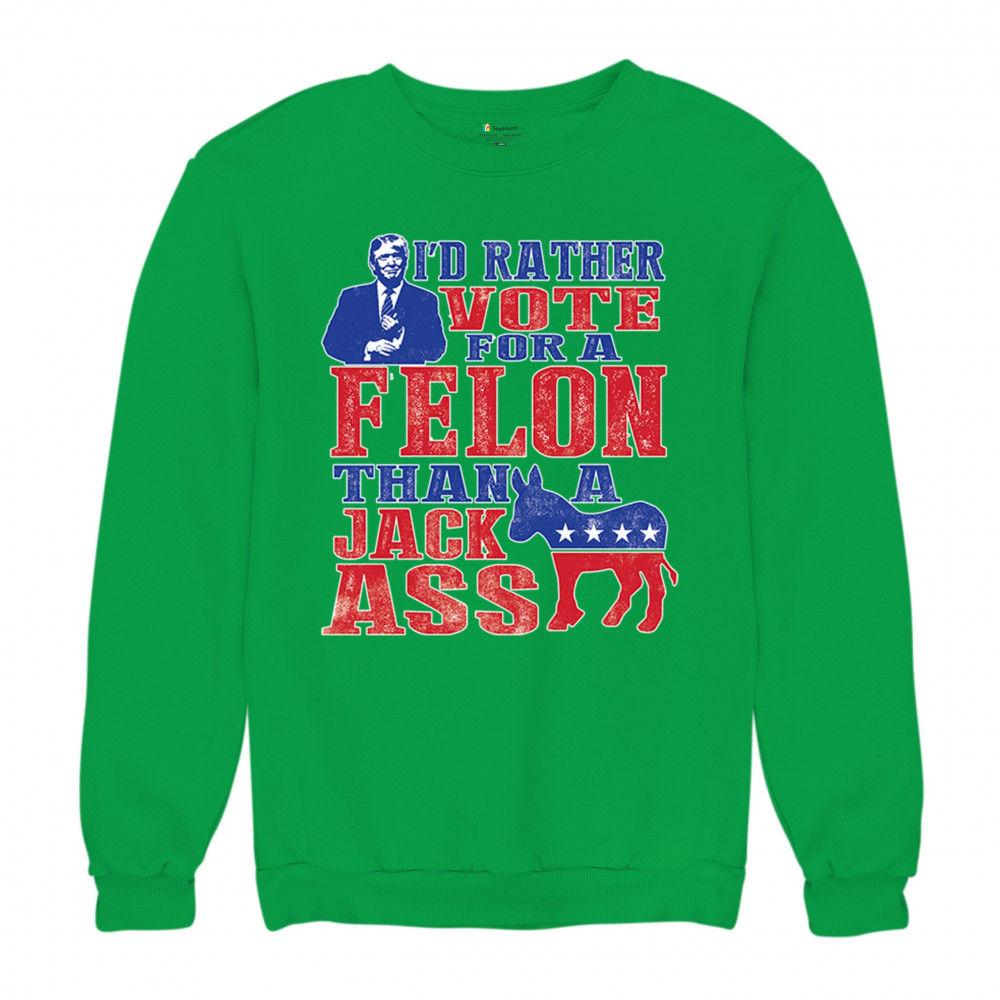 Boldly express your support with the "I'd Rather Vote For A Felon Than A Jackass" design. Perfect for rallies, it showcases loyalty to Trump and JD Vance.