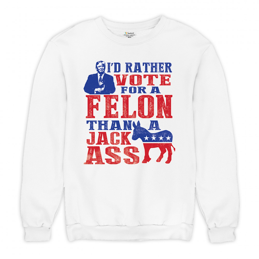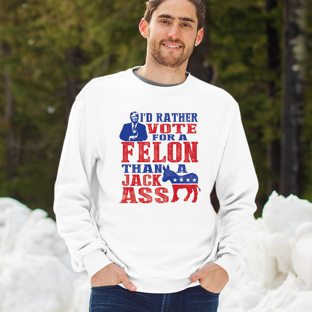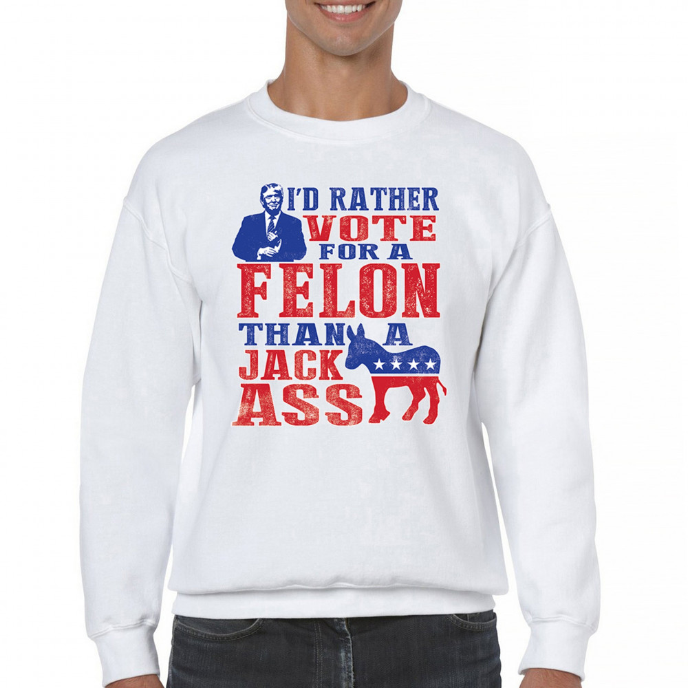 Boldly express your support with the "I'd Rather Vote For A Felon Than A Jackass" design. Perfect for rallies, it showcases loyalty to Trump and JD Vance.