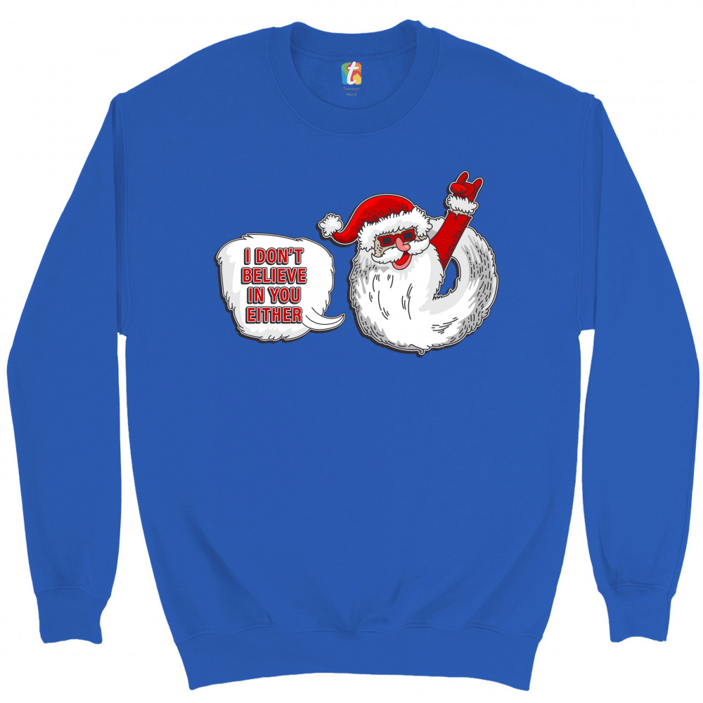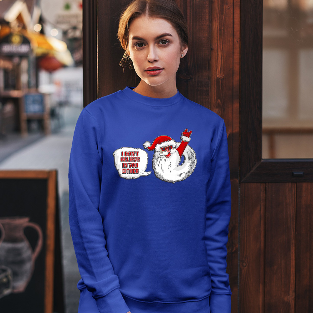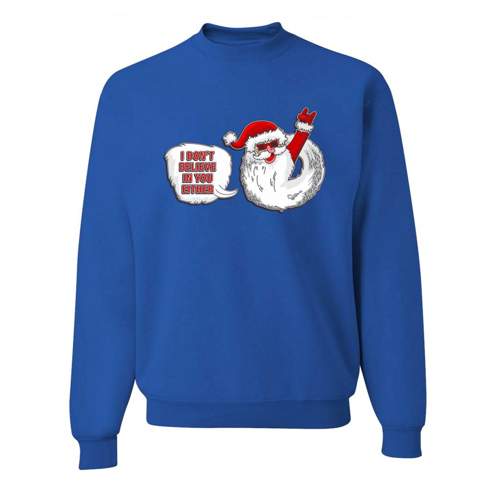 I DON'T BELIEVE IN YOU EITHER sweatshirt santa claus merry christmas crewneck royal blue