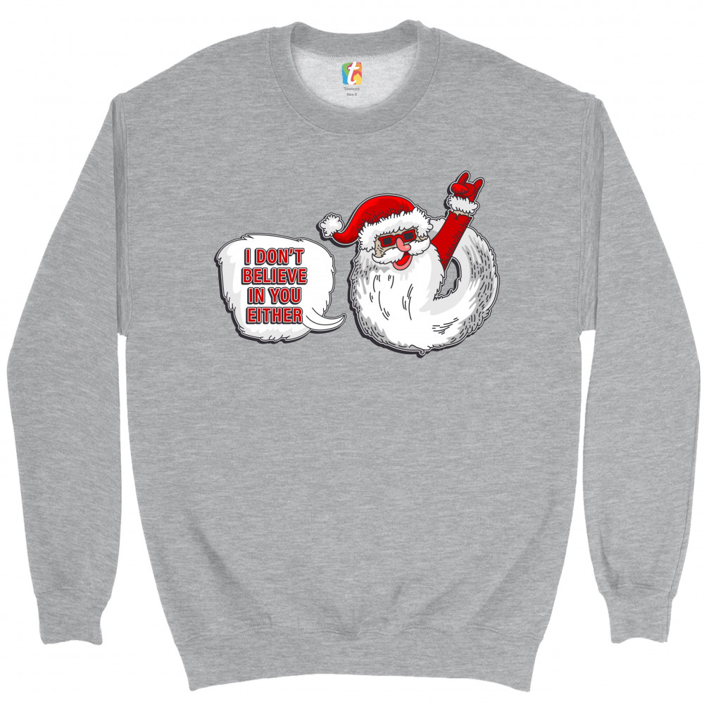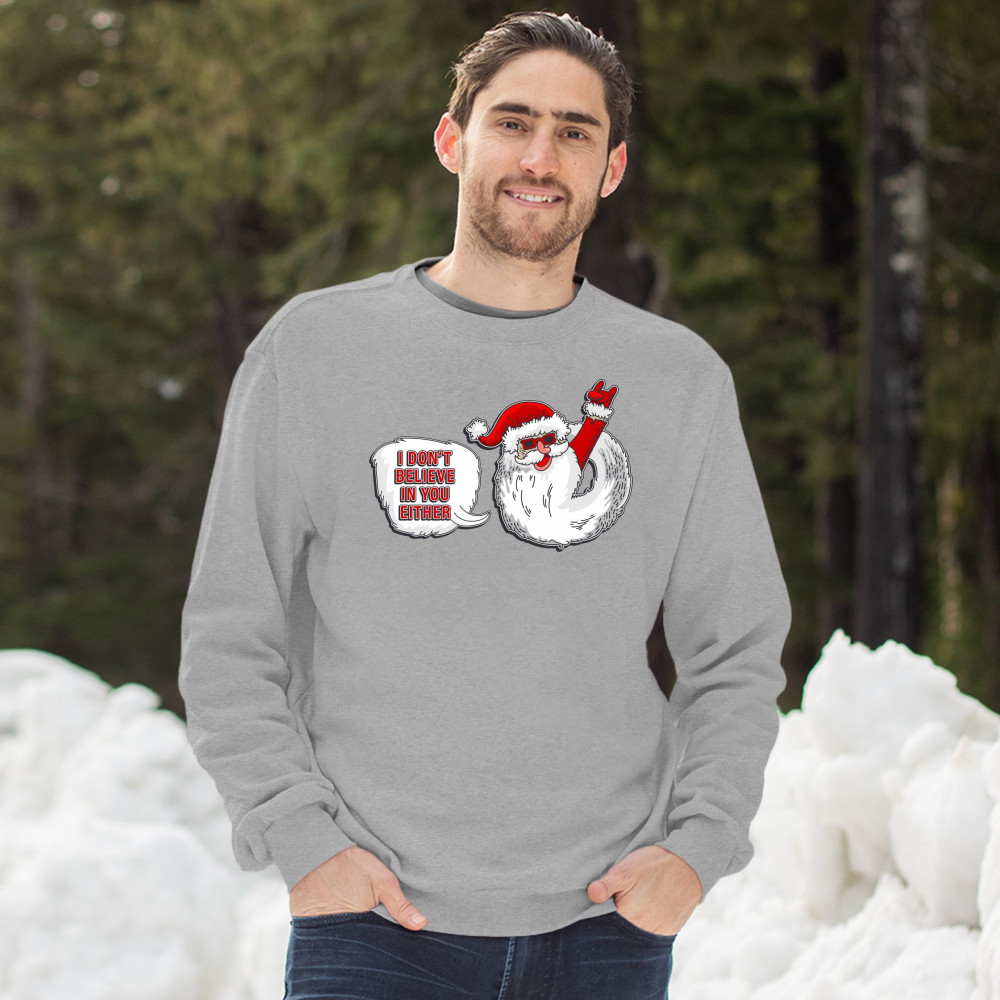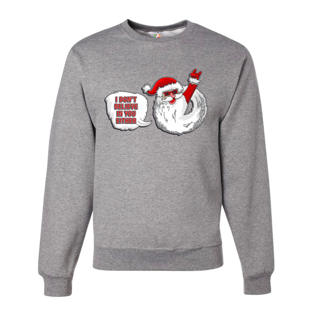 I DON'T BELIEVE IN YOU EITHER sweatshirt santa claus merry christmas crewneck gray