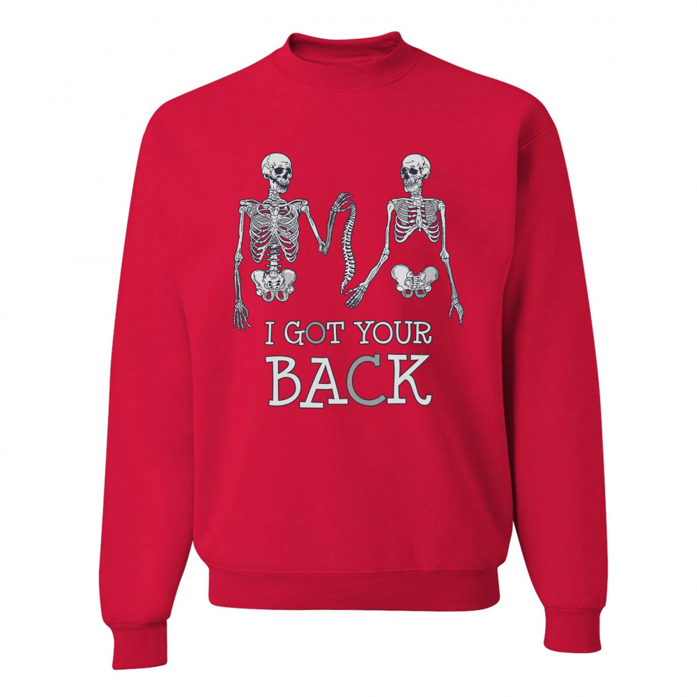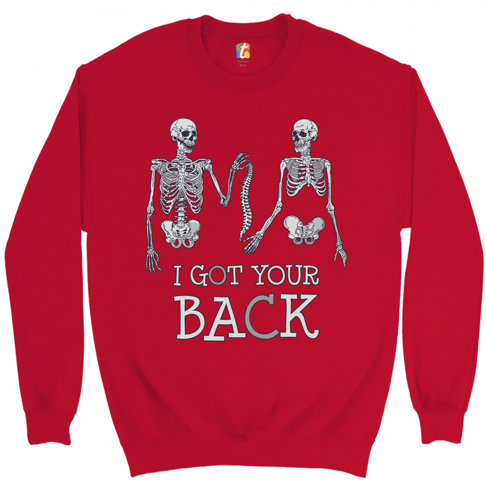 I GOT YOUR BACK sweatshirt happy halloween spooky skeletons crewneck red