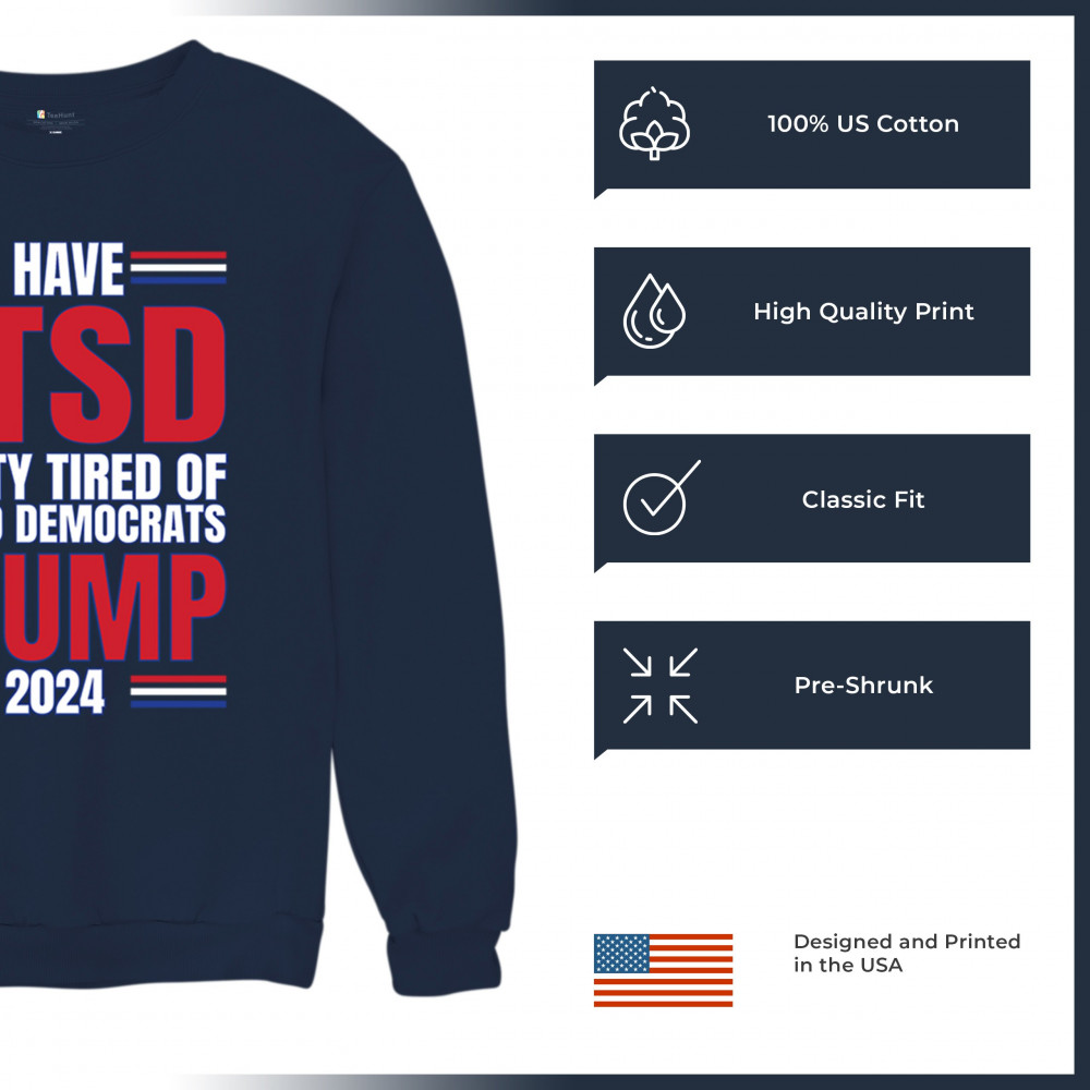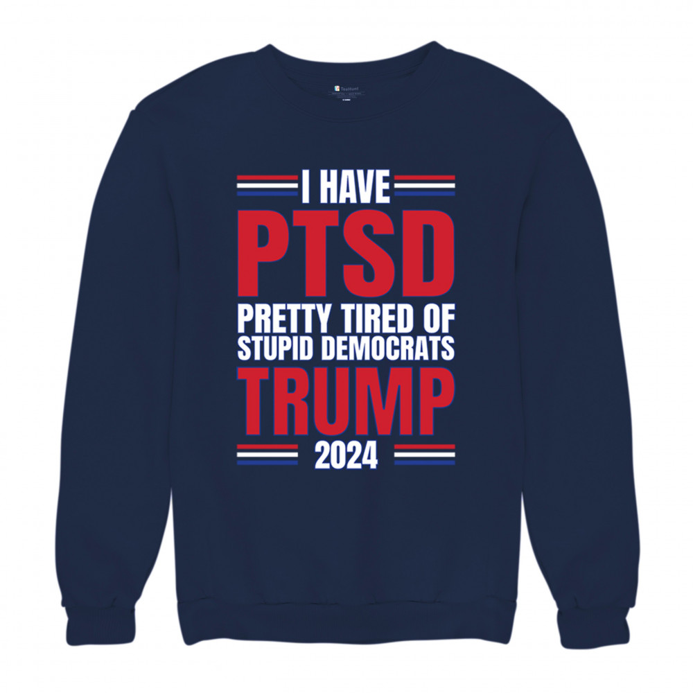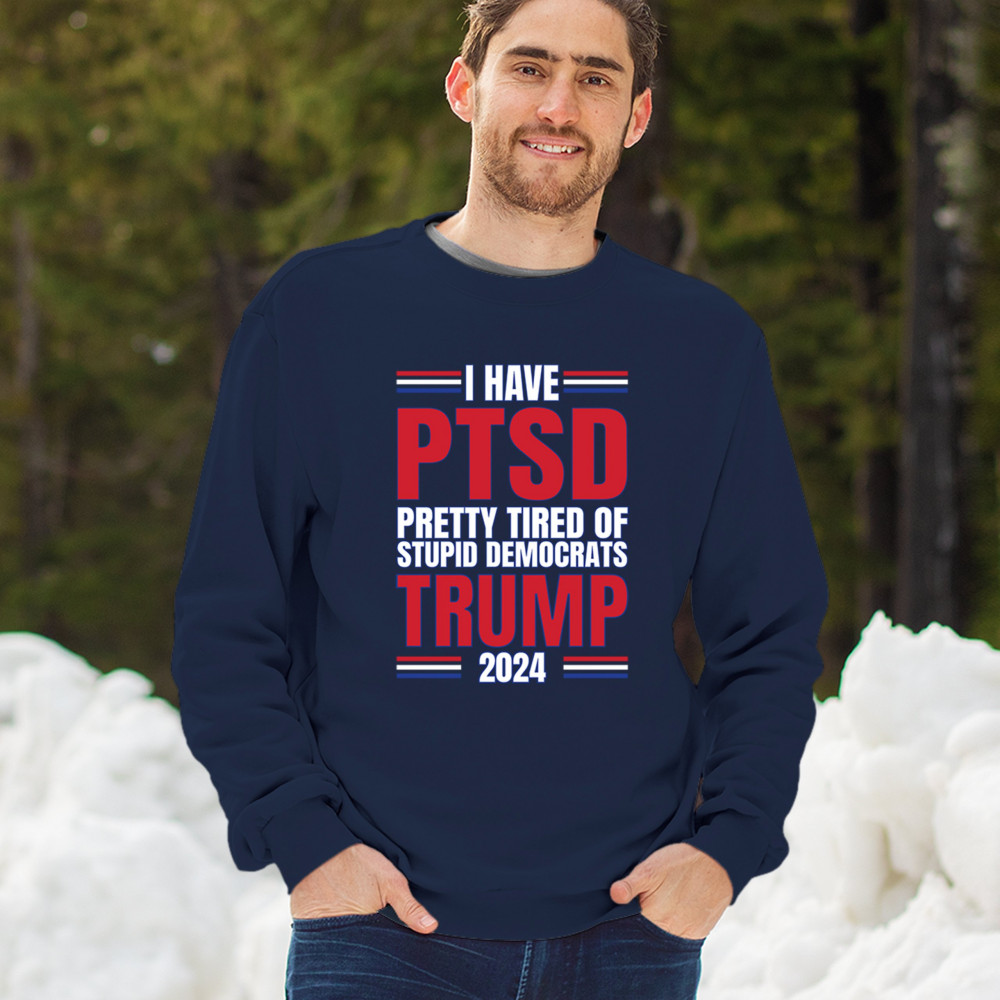 Stand up against the political chaos with "I have PTSD Pretty Tired of Democrats, Trump 2024" tee. As a dedicated supporter of conservative values, join the Trump Train to victory. Trust in God, not government, and reject the traitors to our nation. Let the American flag symbolize our resilience as we fight for President Trump and the future of America.