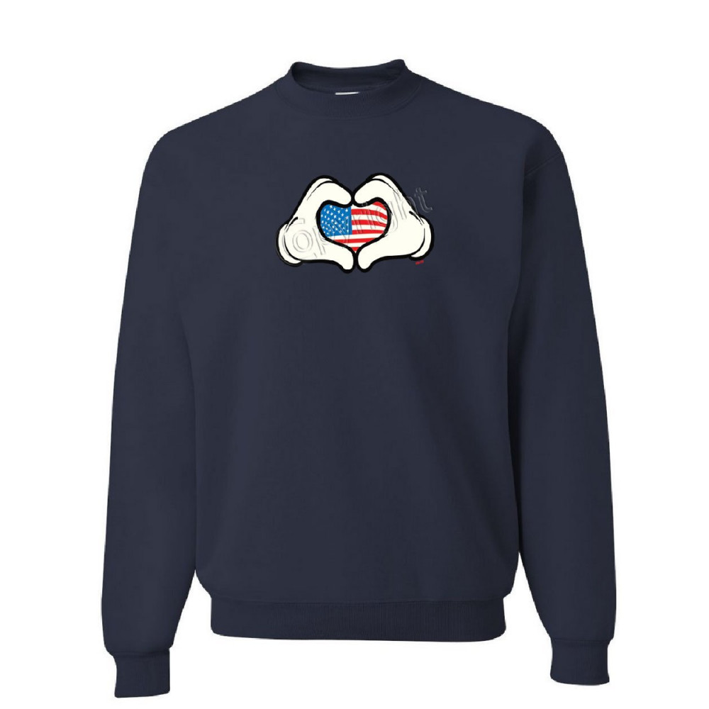 I HEART USA CARTOON HANDS sweatshirt 4th of july cute american flag sweater navy blue