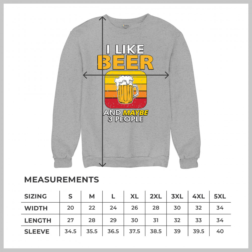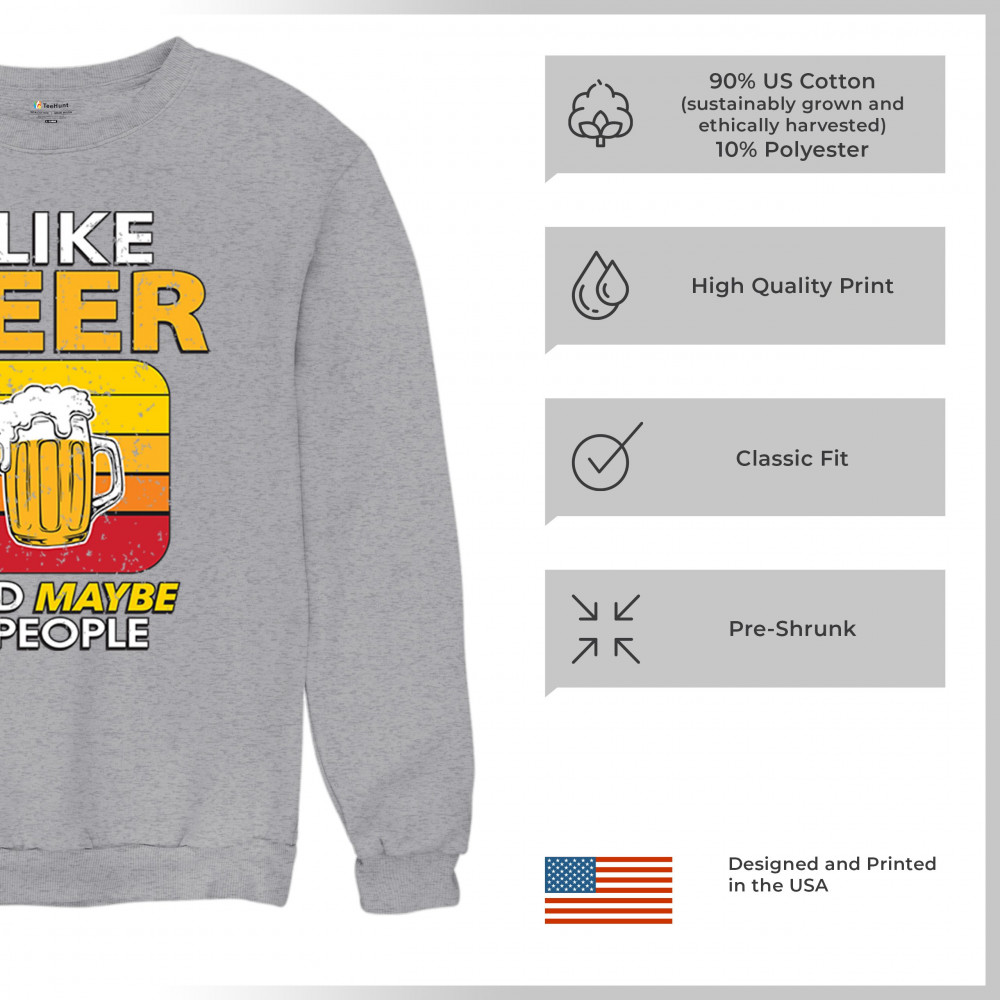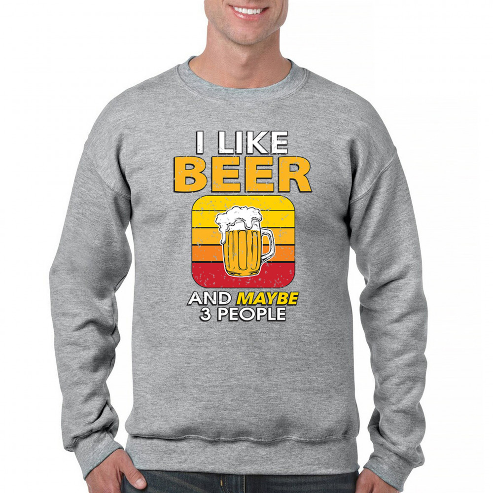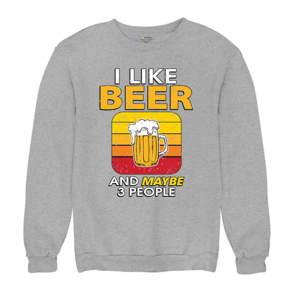 I LIKE BEER & 3 PEOPLE sweatshirt sarcastic humor craft brewery lager crewneck gray