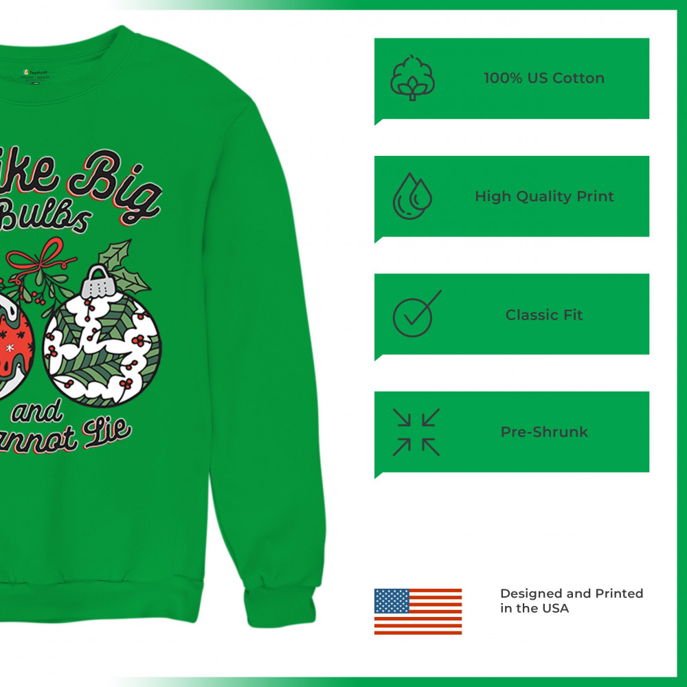 Light up the holiday season with our "I Like Big Bulbs" design, a playful and festive addition to any celebration. This unique design is perfect for cozy family gatherings, office parties, or Secret Santa exchanges, adding a humorous twist to your holiday wardrobe. Ideal for matching group outfits or gift exchanges, it captures the Christmas spirit in a fun and memorable way. From jolly gatherings to festive gift ideas, this design brings cheer to every holiday event.