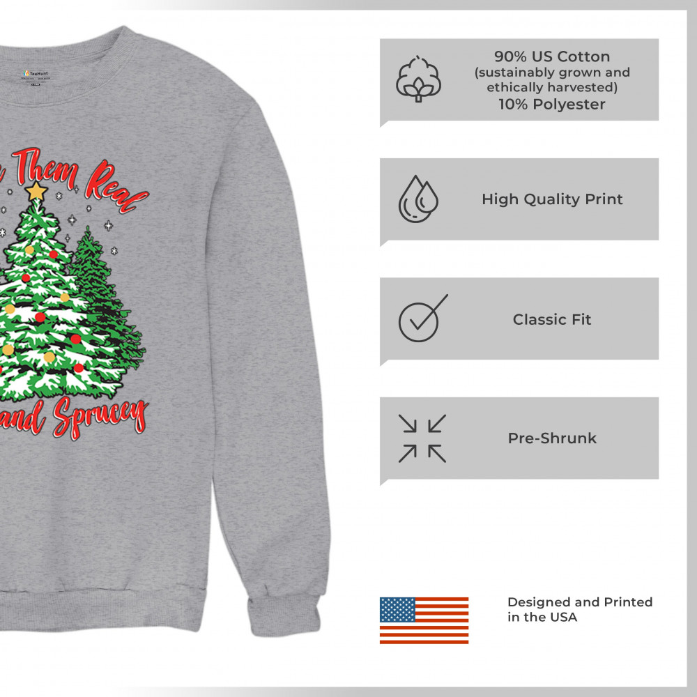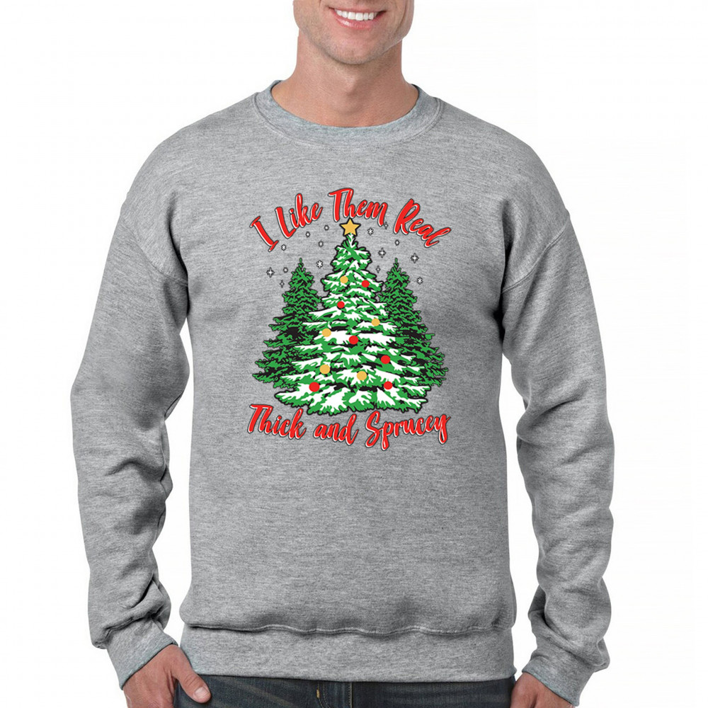 Enjoy the holiday season with our "I Like Them Real, Thick, and Sprucey" Christmas tree design, perfect for festive gatherings and holiday gifting!