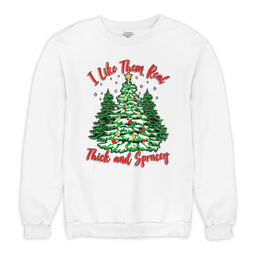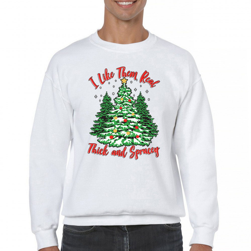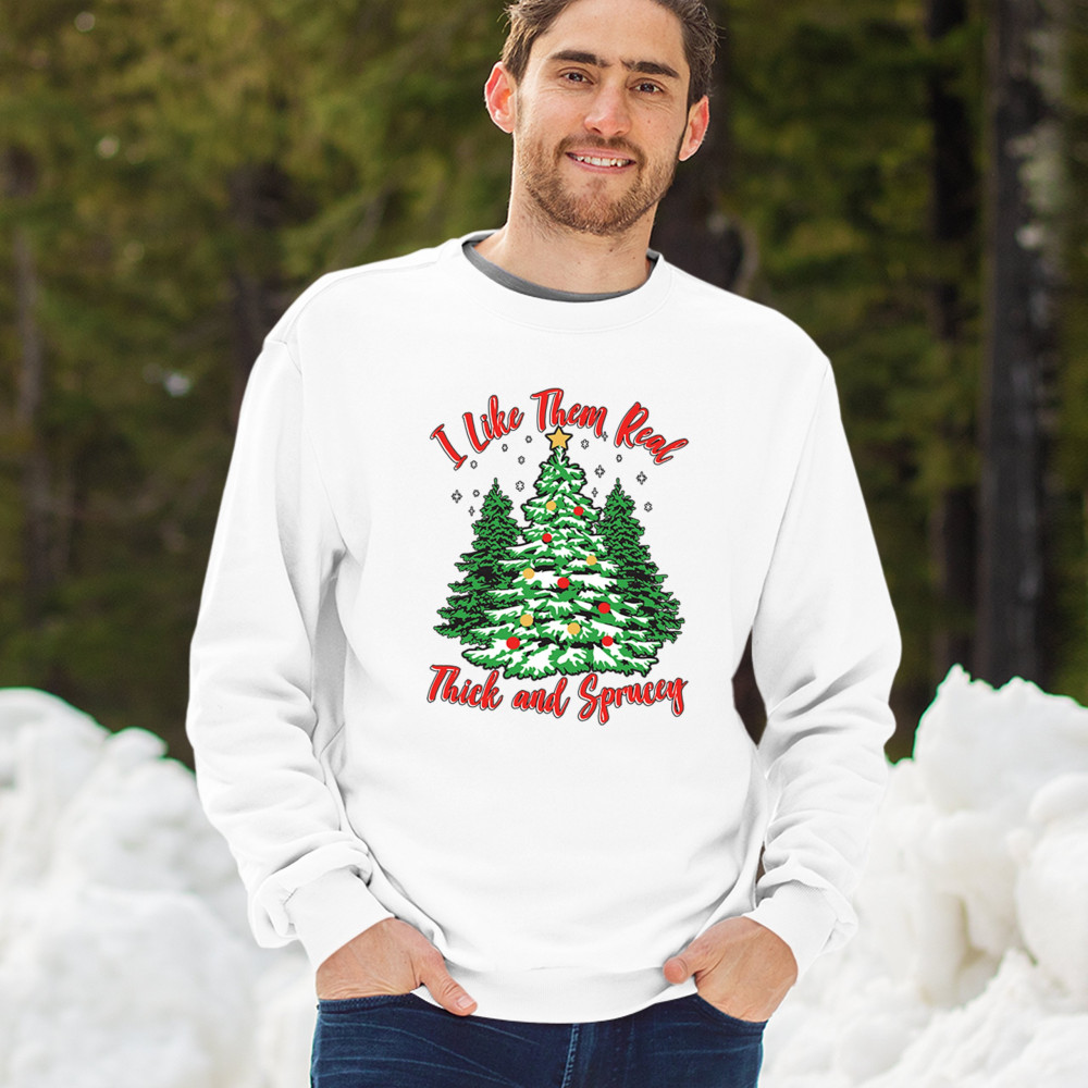 Enjoy the holiday season with our "I Like Them Real, Thick, and Sprucey" Christmas tree design, perfect for festive gatherings and holiday gifting!