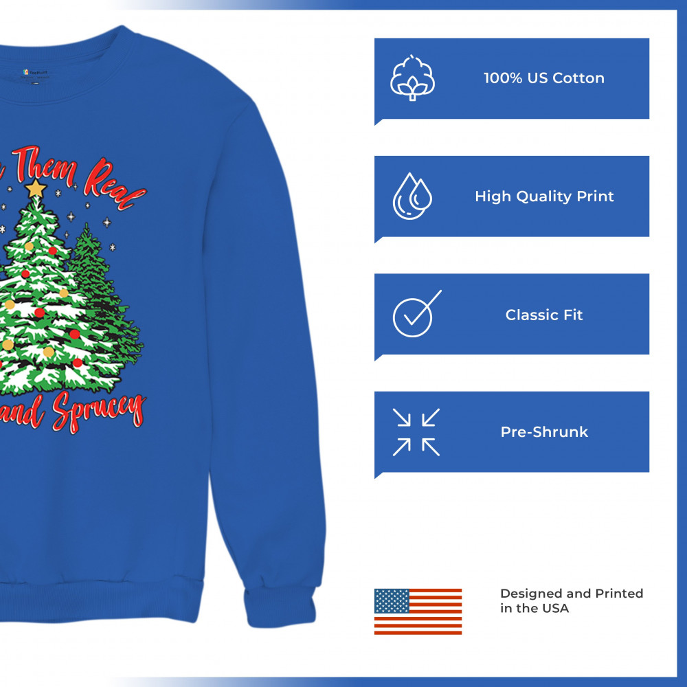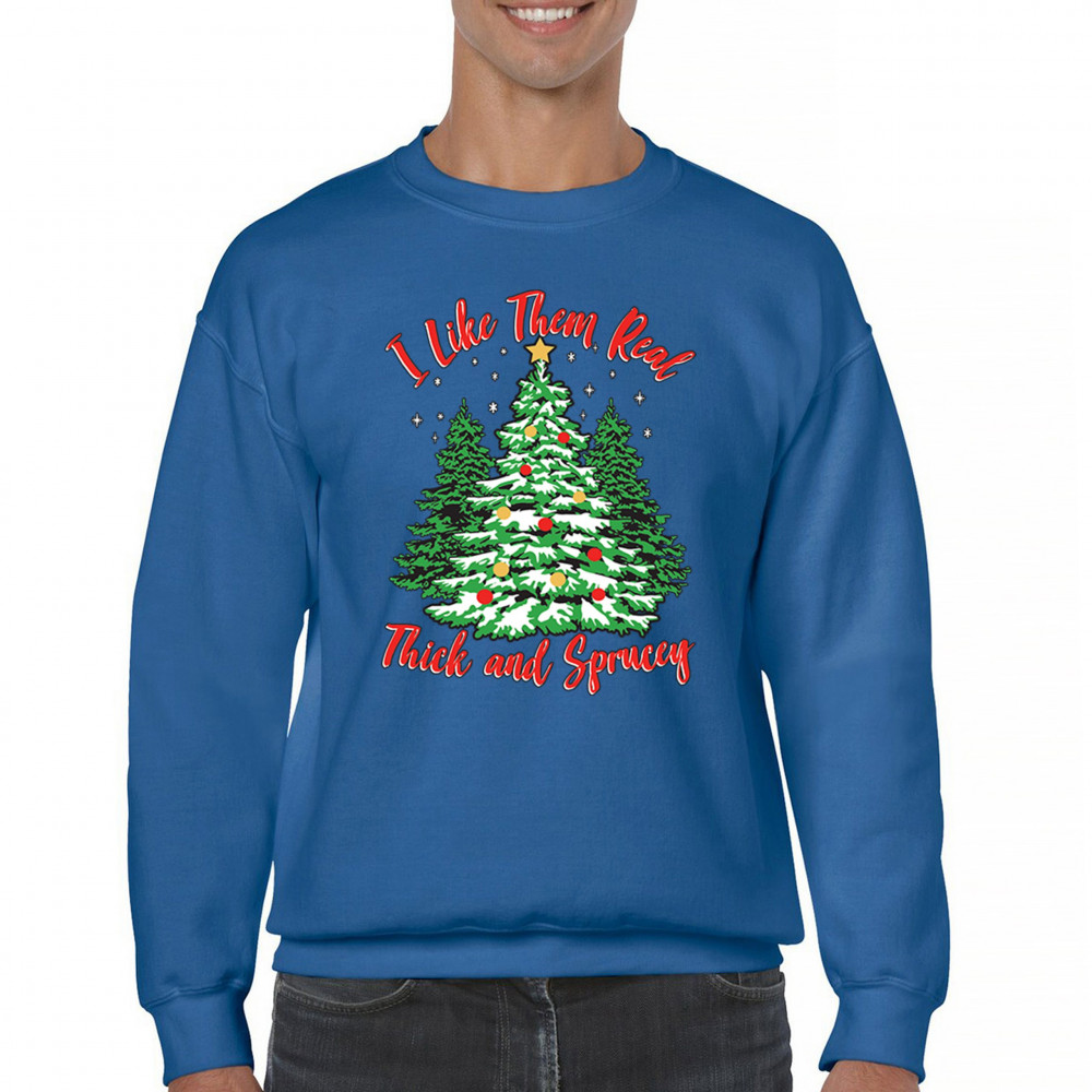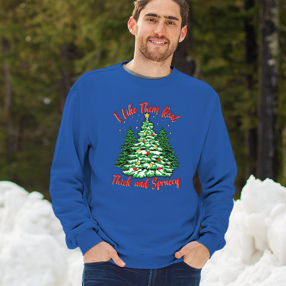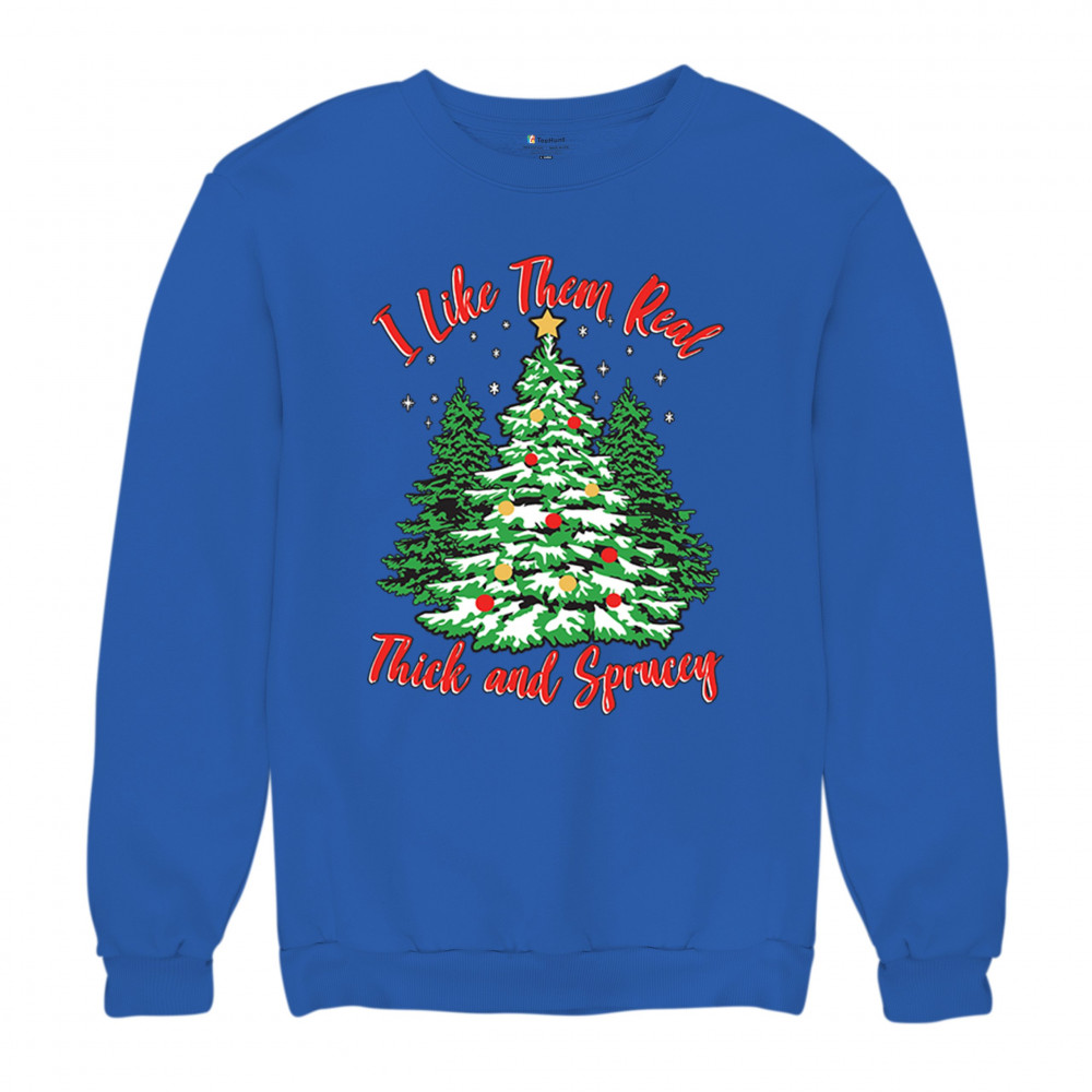 I LIKE THEM REAL THICK AND SPRUCEY sweatshirt christmas adult humor crewneck royal blue