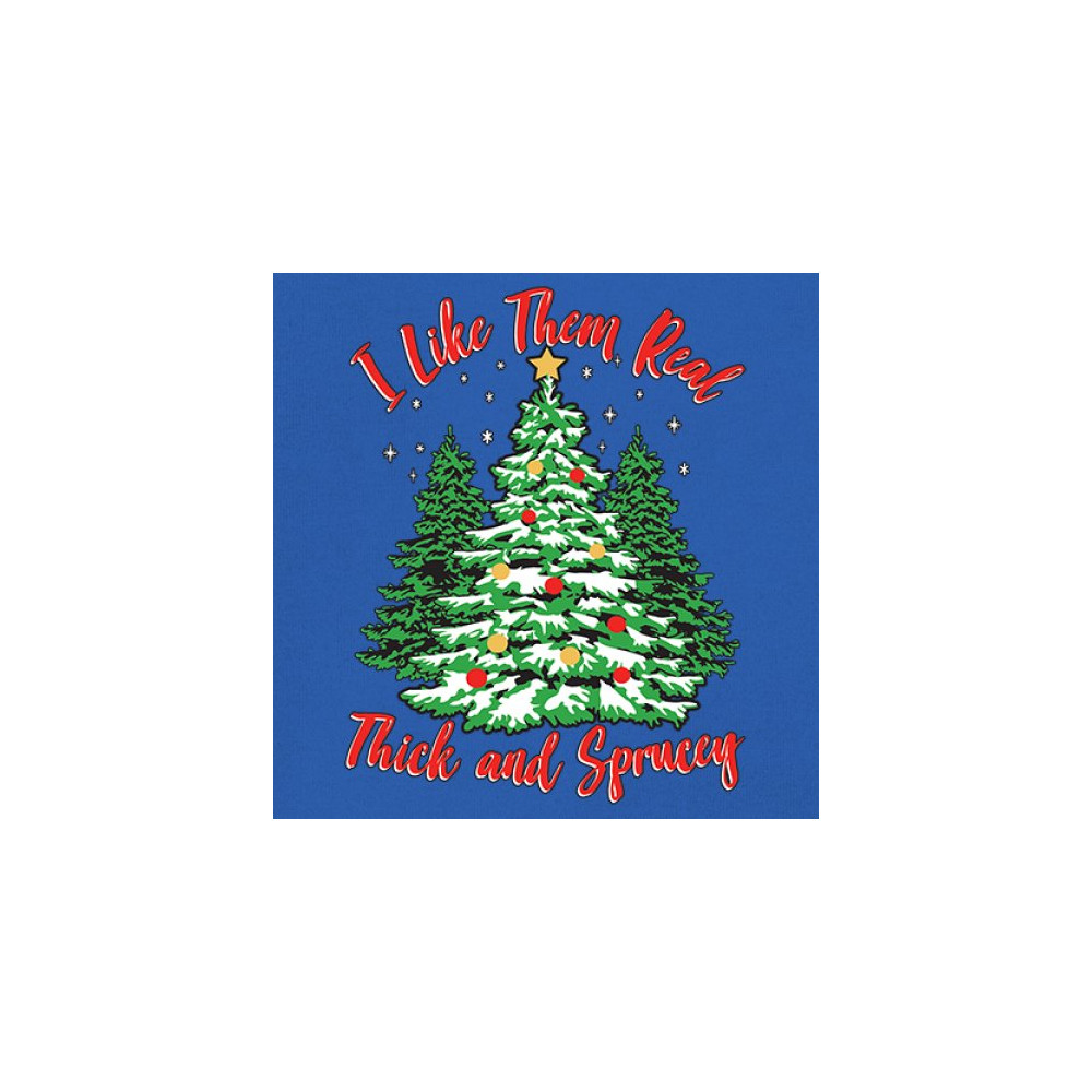 Enjoy the holiday season with our "I Like Them Real, Thick, and Sprucey" Christmas tree design, perfect for festive gatherings and holiday gifting!