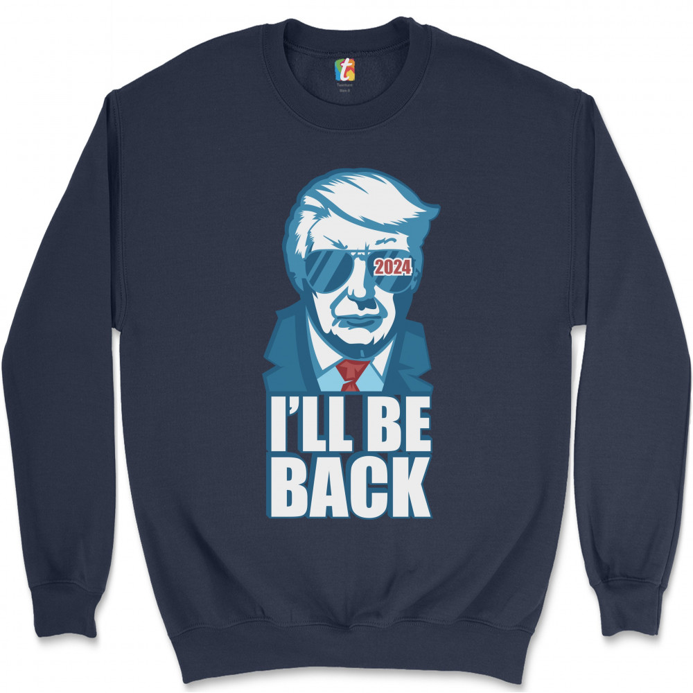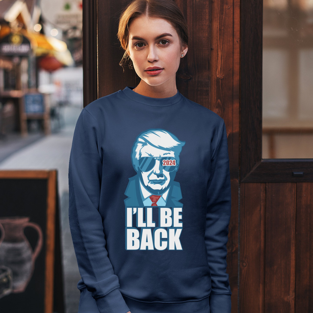 I'LL BE BACK DONALD TRUMP 2024 sweatshirt take america back two terms crewneck navy blue