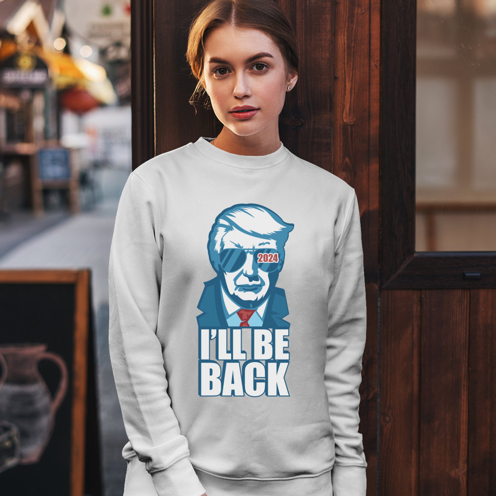 I'LL BE BACK DONALD TRUMP 2024 sweatshirt take america back two terms crewneck white