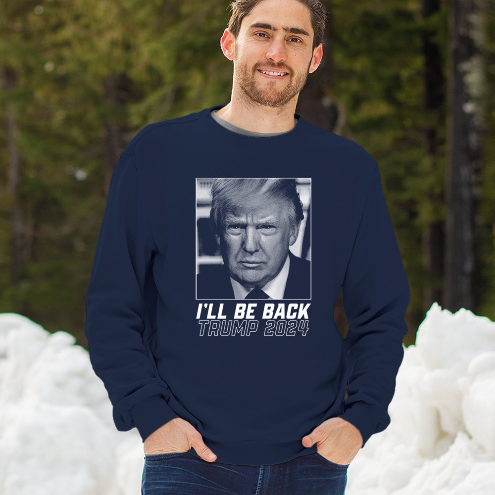 Gear up for Trump's 2024 return with our 'I'll Be Back. Trump 2024' design. Perfect for conservative patriots, it symbolizes resilience and unwavering support. Stand tall and declare your allegiance.