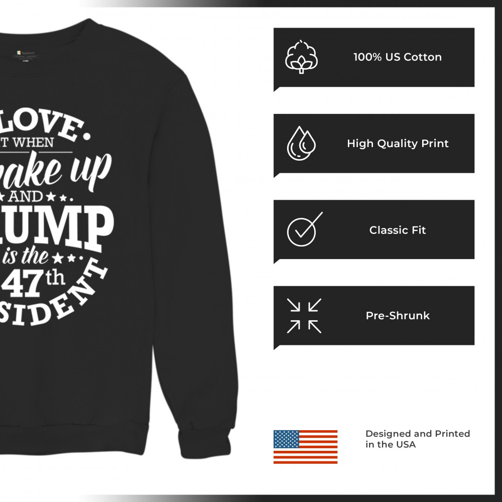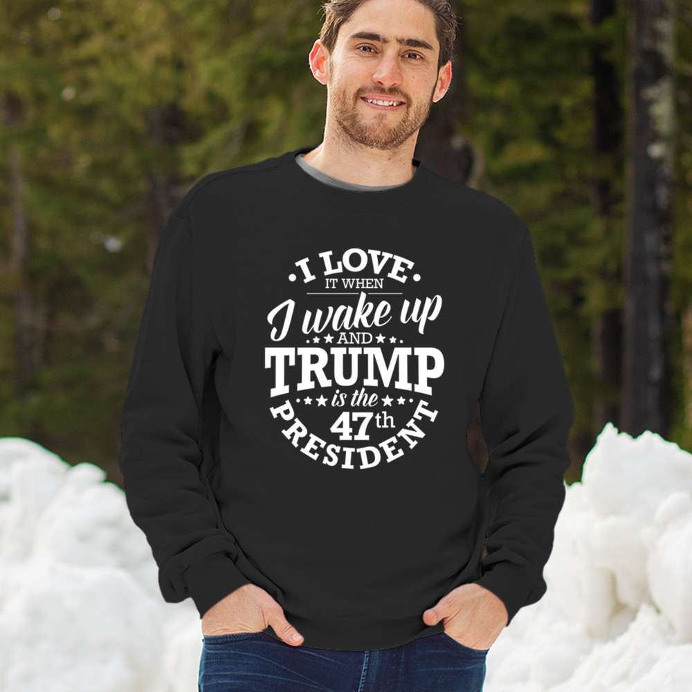 This "I Love It When I Wake Up and Trump is the 47th President" design is the ultimate expression of support for Donald J. Trump and his vision for America. Join the ranks of proud conservatives, Republicans, and America First advocates who are excited about the 47th President’s leadership. Celebrate the Red Wave and stay true to the values of freedom and strength that Trump embodies. Perfect for rallies, gatherings, and everyday patriotic wear.