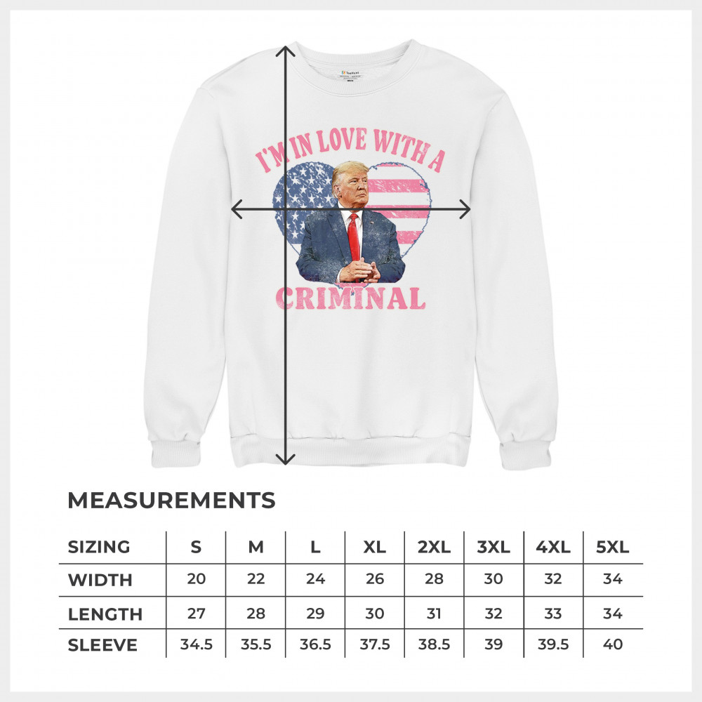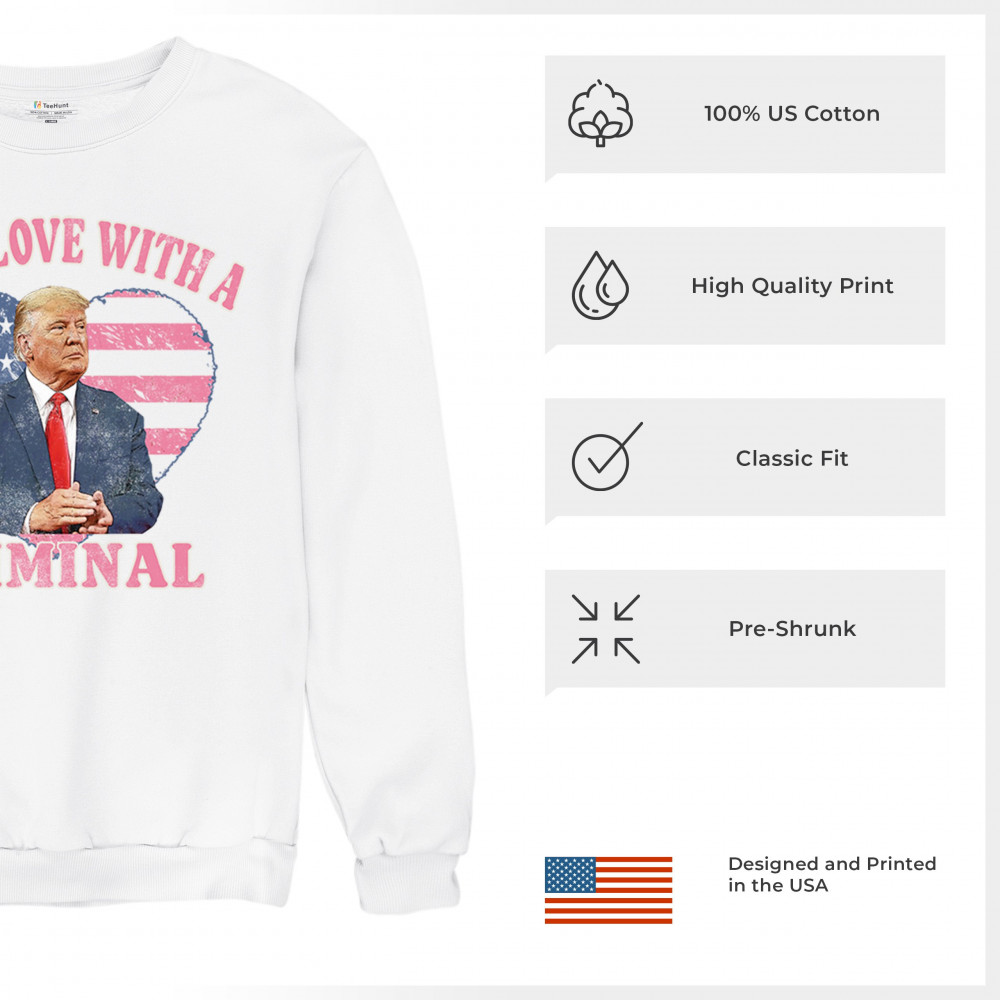 Support Trump with this "I'm in Love with a Criminal" design, embodying conservative values and America First ideals. Perfect for rallies and daily expression.